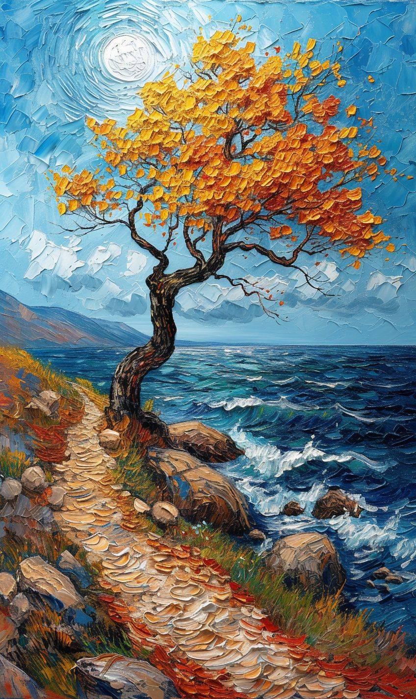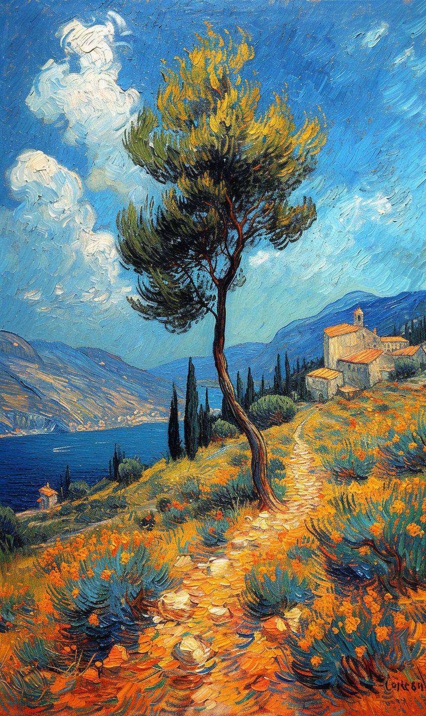 Vincent van Gogh Nature, Paysages, Portraits , Créez un paysage impressionniste avec des touches de couleurs vives. --ar 3:5 --v 6 --stylize 750