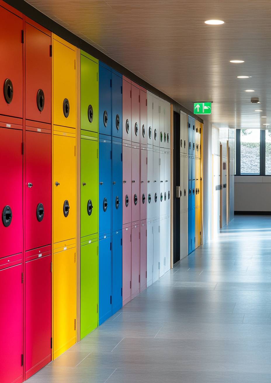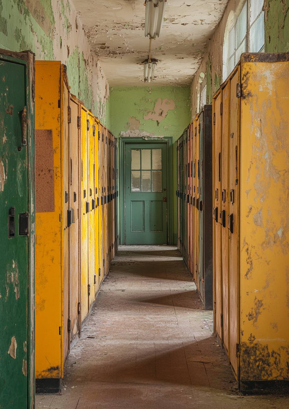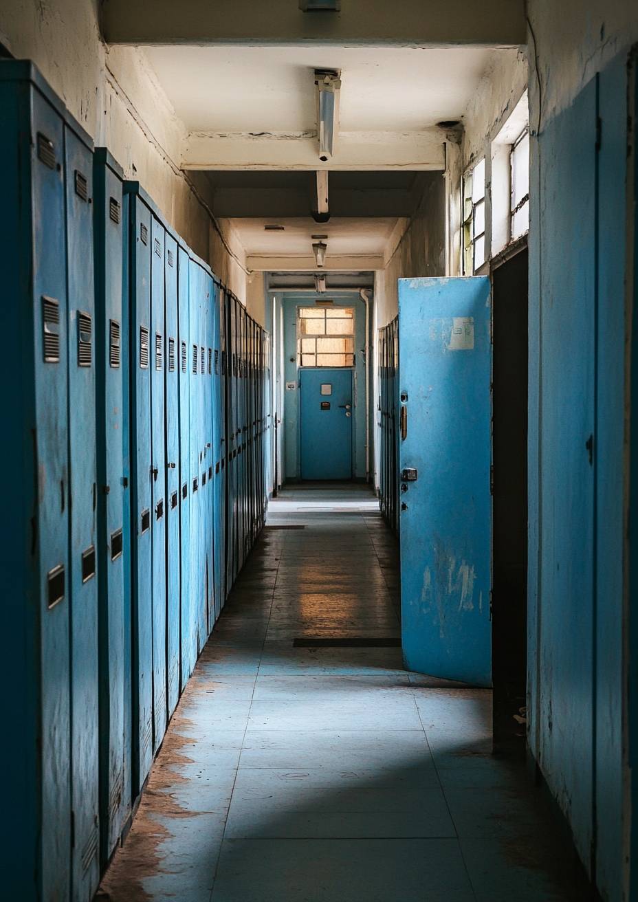 editorial photo the hallway at the school with school lockers --ar 5:7 --style raw --v 6.1