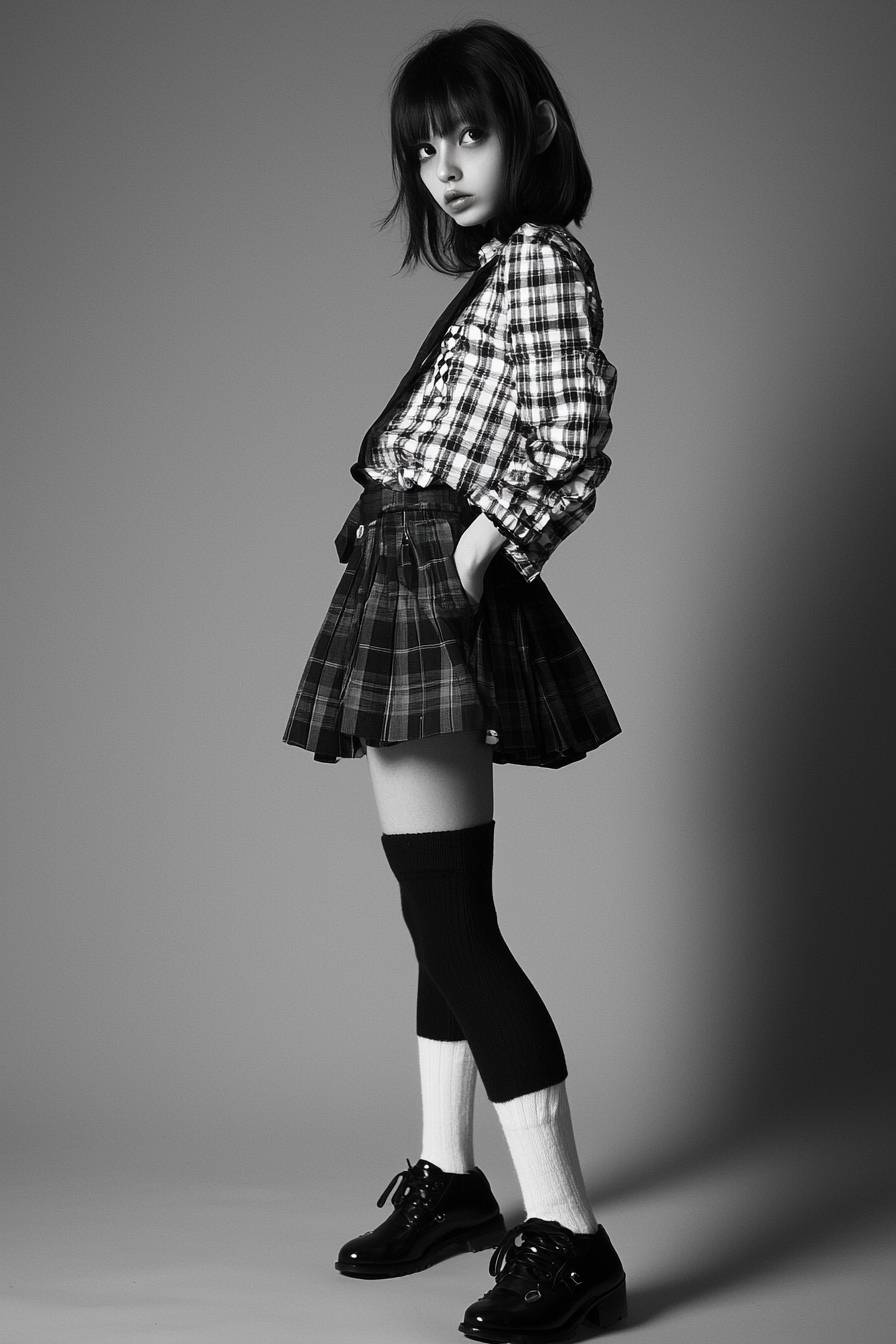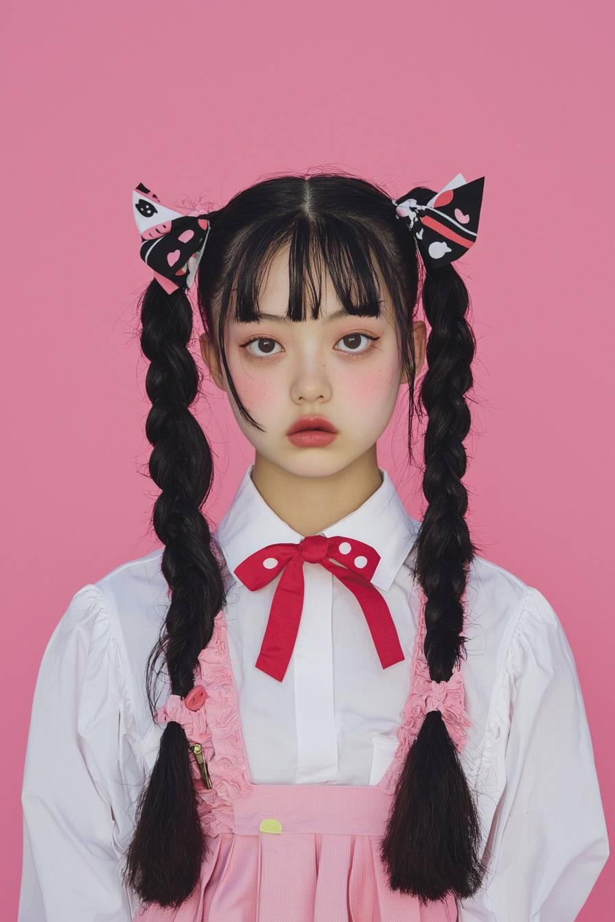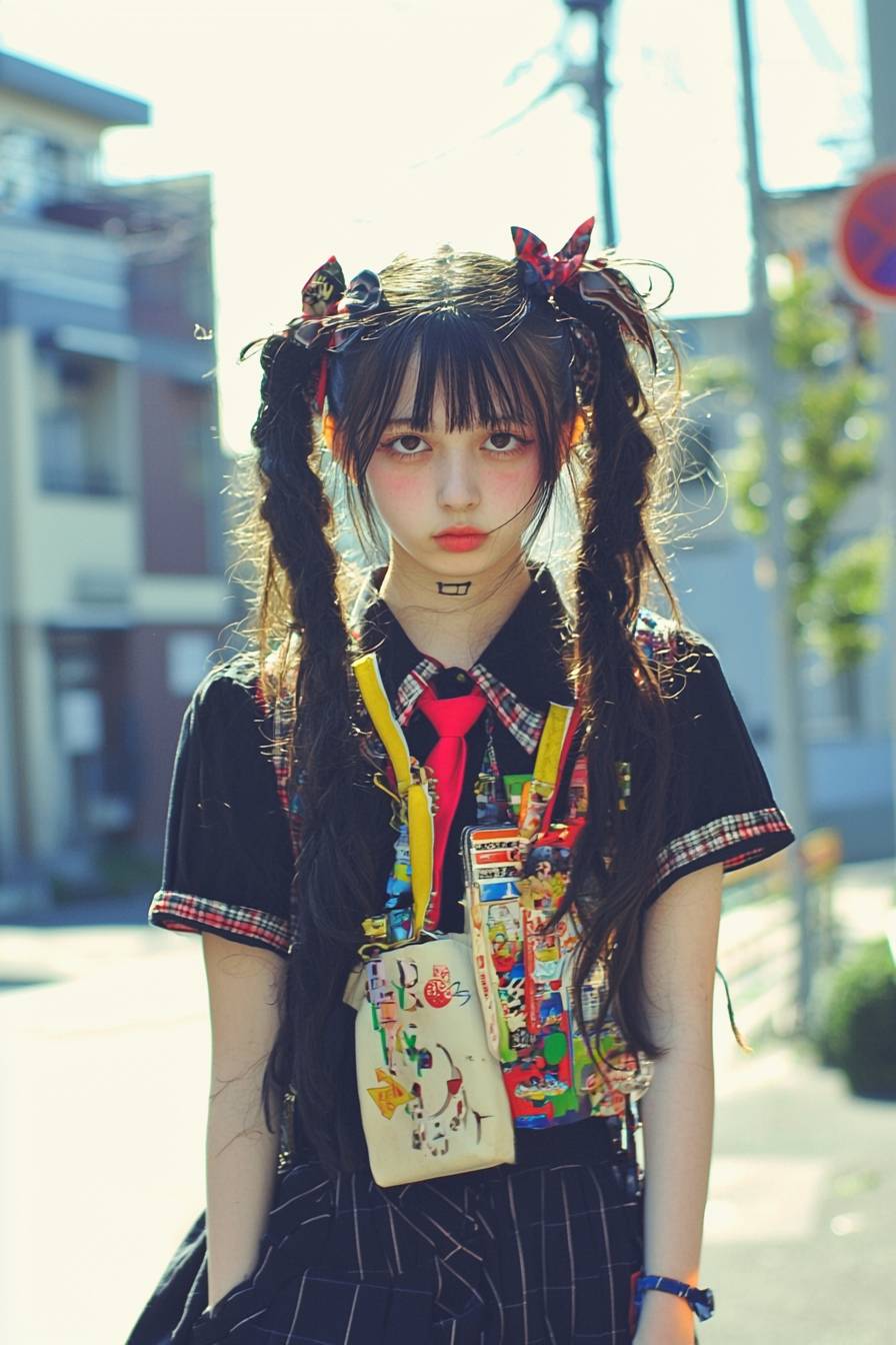 Fashion photography, half-body shot, charisma quirky high school Japanese girl --quality 2 --style raw --personalize py18rof --stylize 50 --v 6.1 --ar 2:3