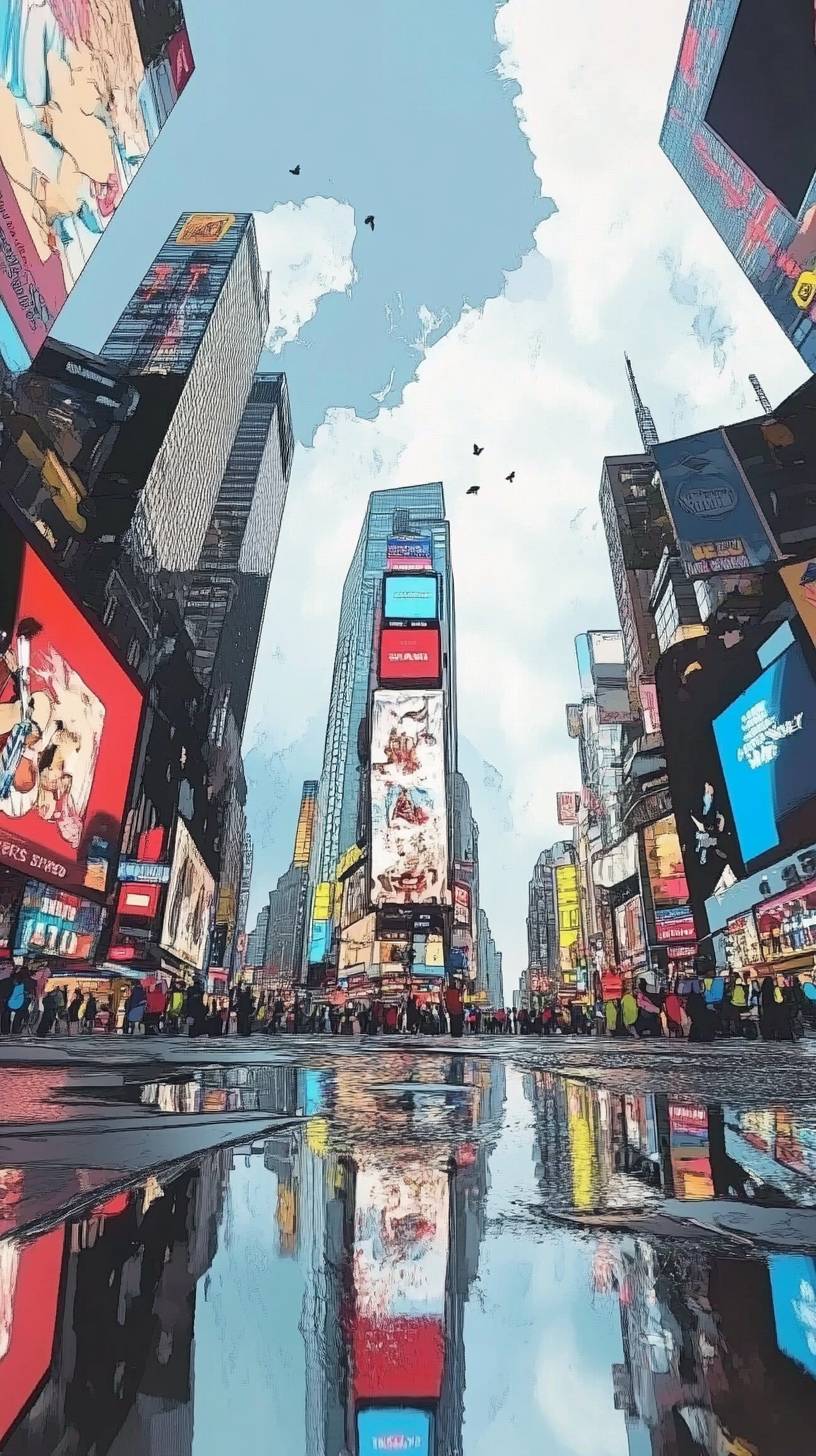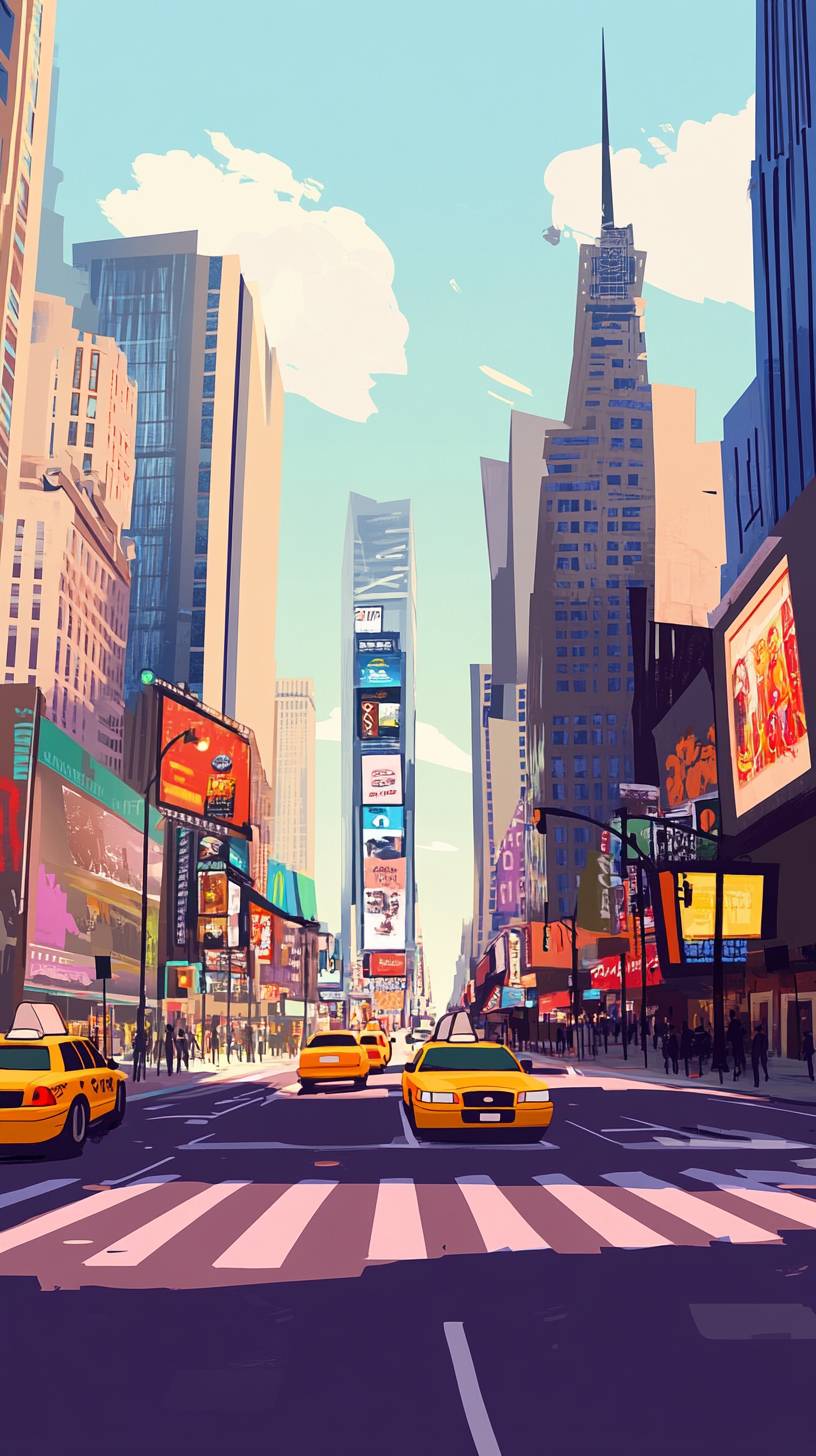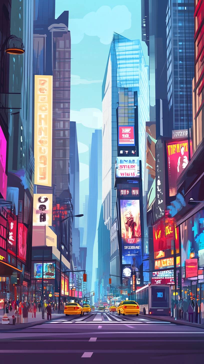 cute cartoon art of Times Square street perspective --ar 9:16 --stylize 50 --v 6.1