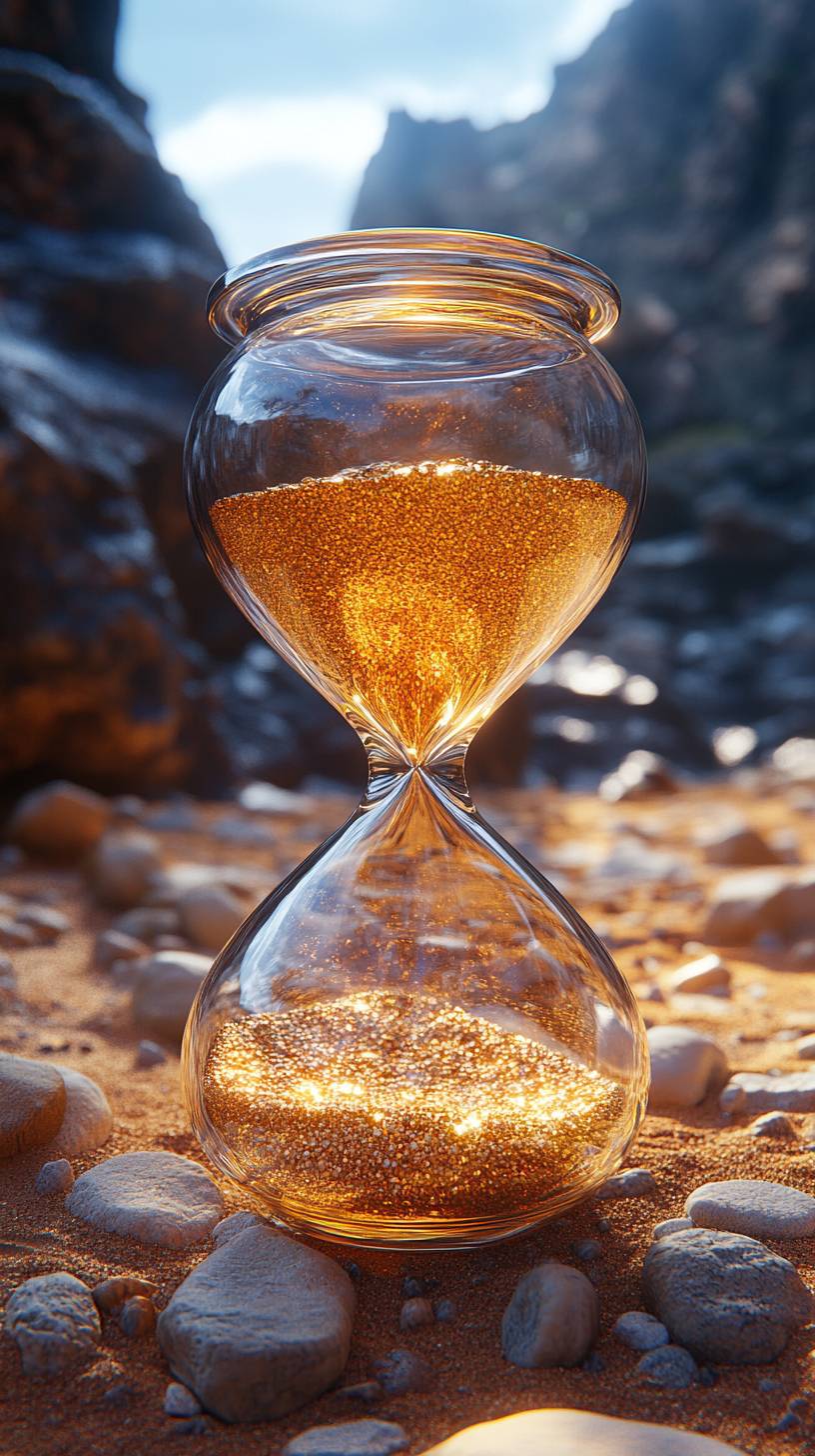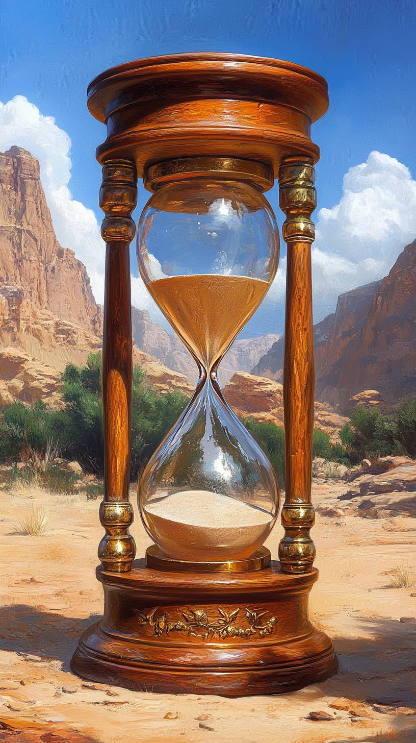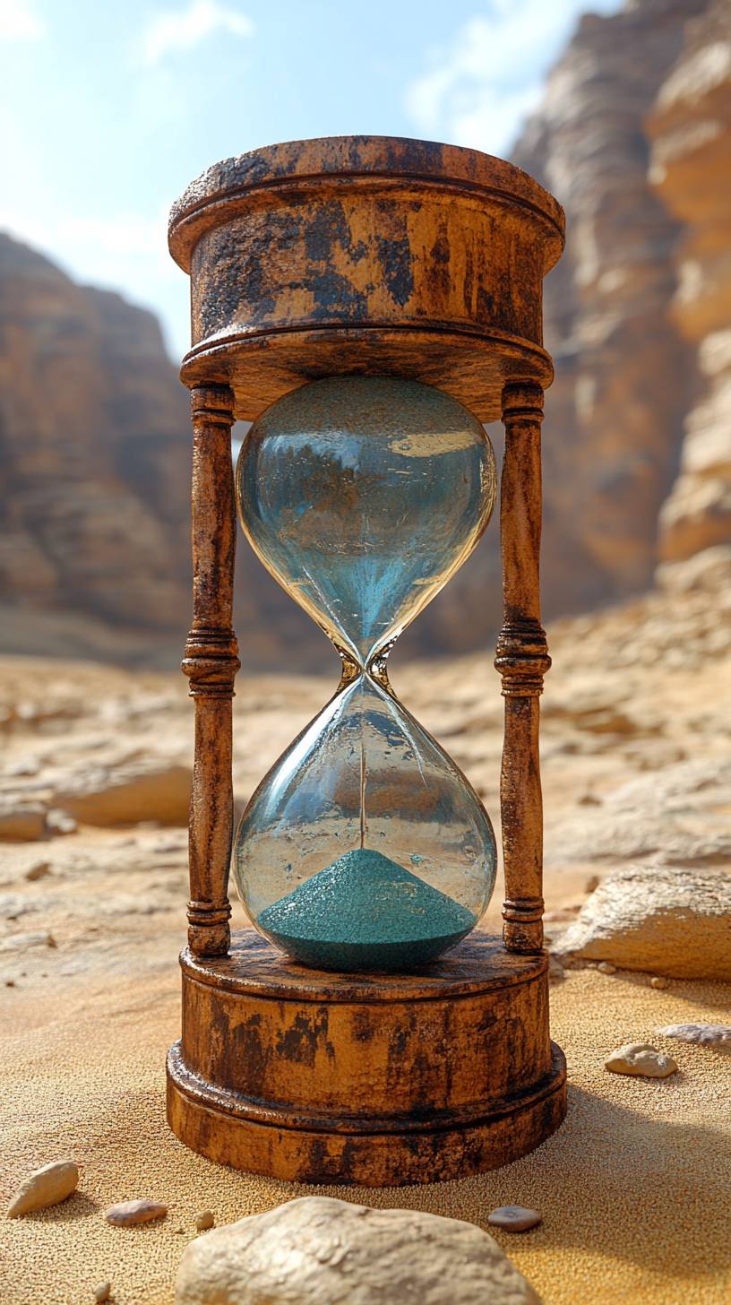 hourglass in the desert, UHD --chaos 20 --ar 9:16 --stylize 750 --v 6.1