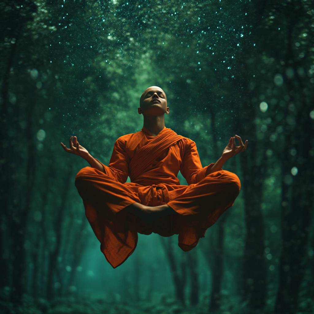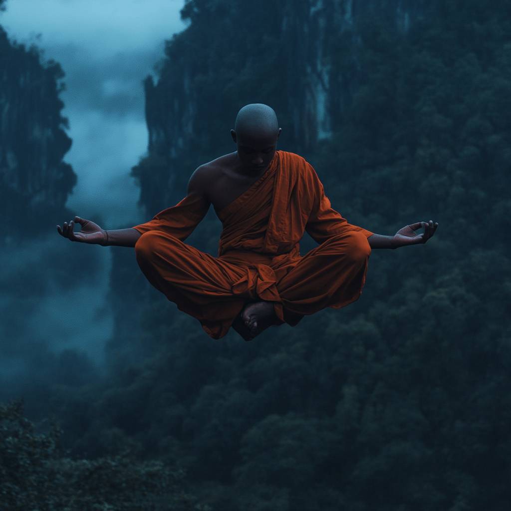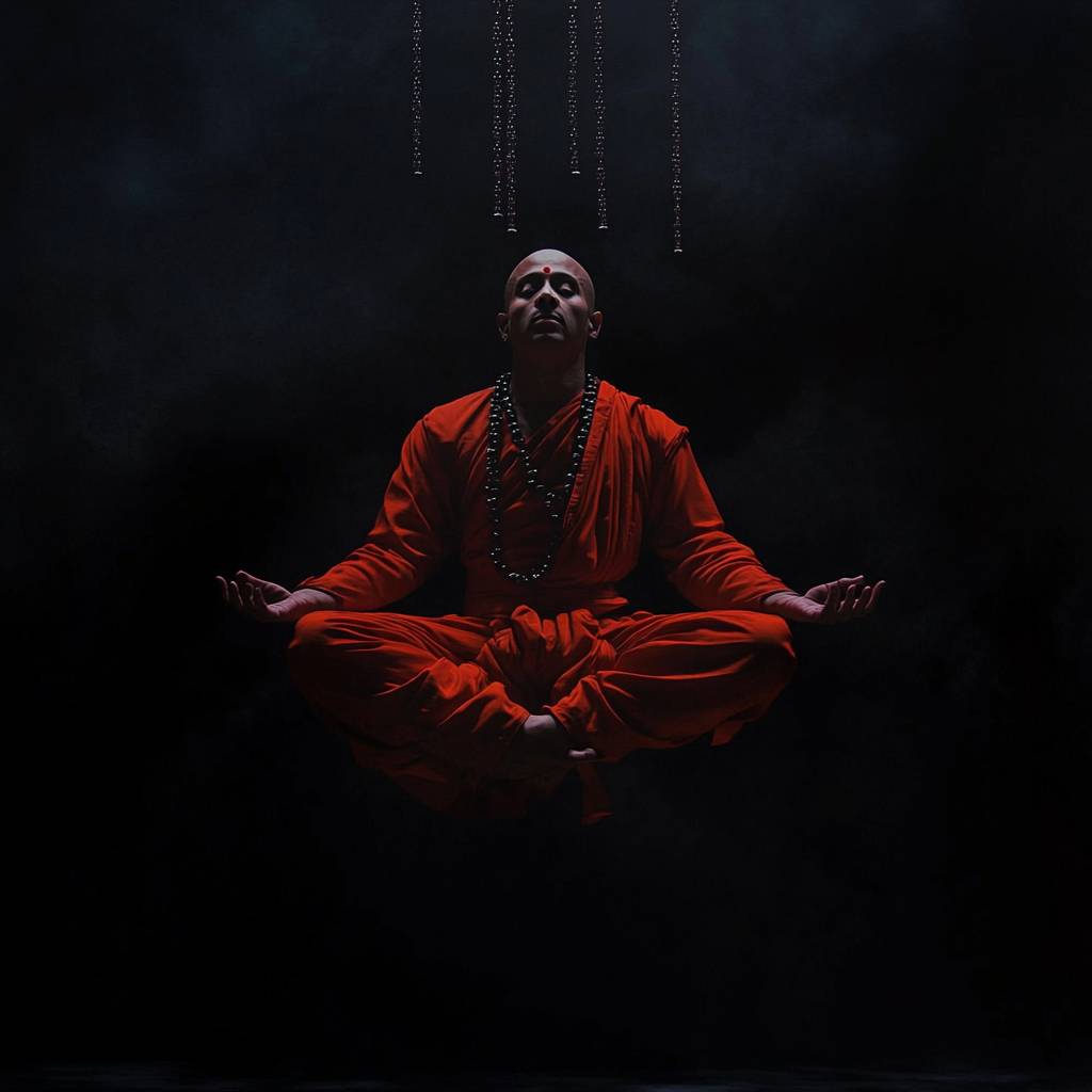 a tamil monk leviating in air meditating pose --ar 1:1 --personalize ma3couh --v 6.1