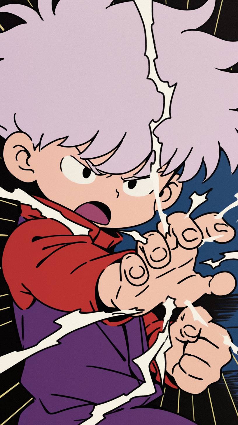 漫畫封面,(來自《咒術回戰》的五條悟),以動作姿勢描繪,採用大友克洋和讓·吉羅的風格,色彩鮮艷,超細緻,最佳質量,高分辨率