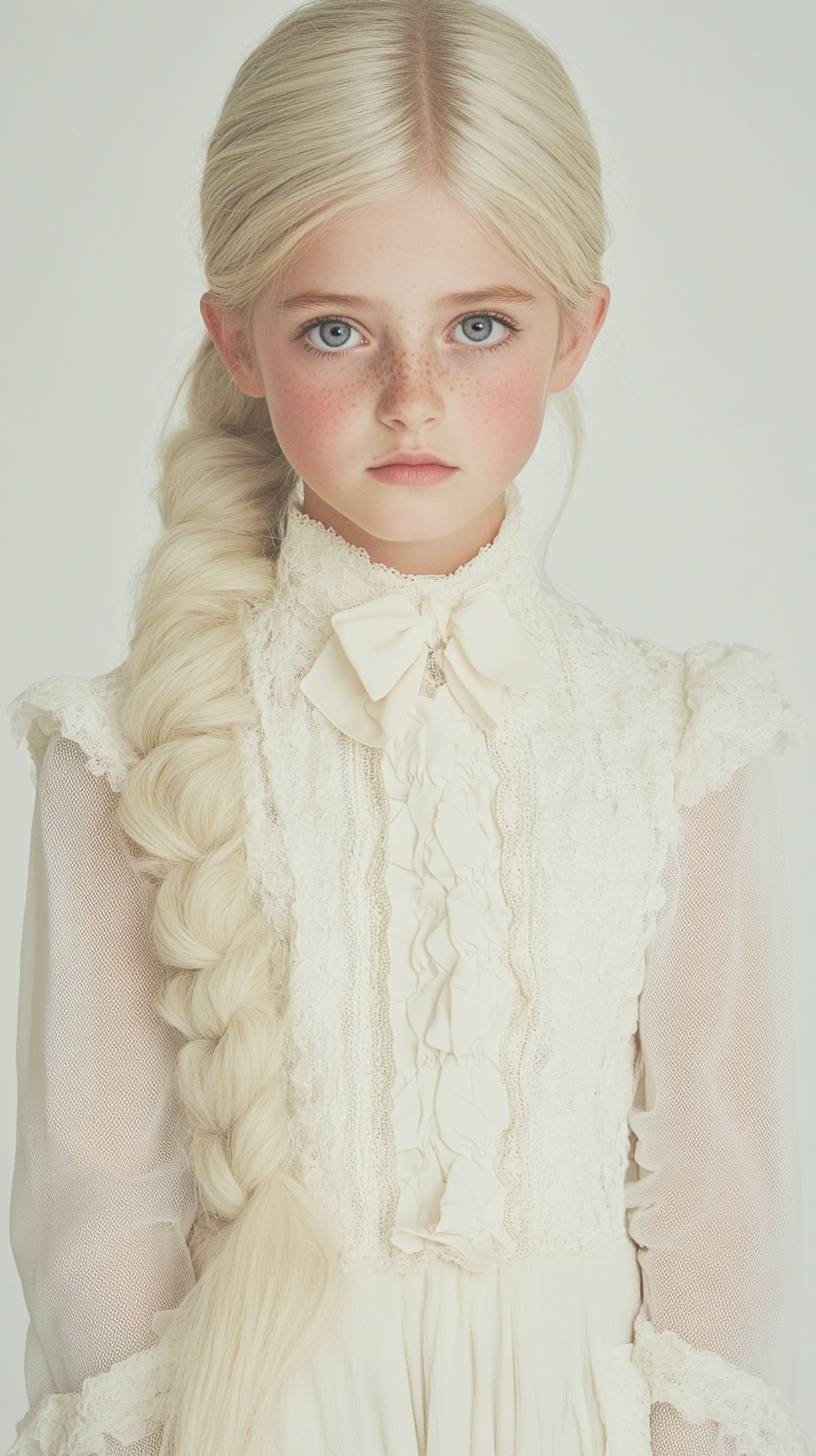 full body of Emotional portrait of AI girl, vibrant, super real, detailed, ethnicWear, calm, white hair, fair skin, cosmic big eyes, --chaos 60 --ar 9:16 --style raw --personalize d2vtas6 --stylize 1000 --v 6.1
