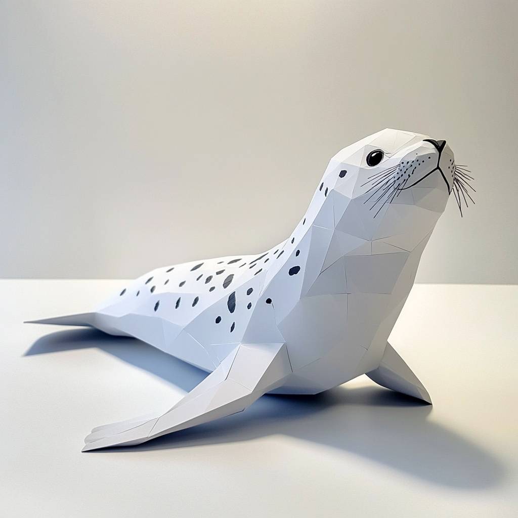 Assembling a performing spotted seal with simple geometric shapes --style raw --v 6.1