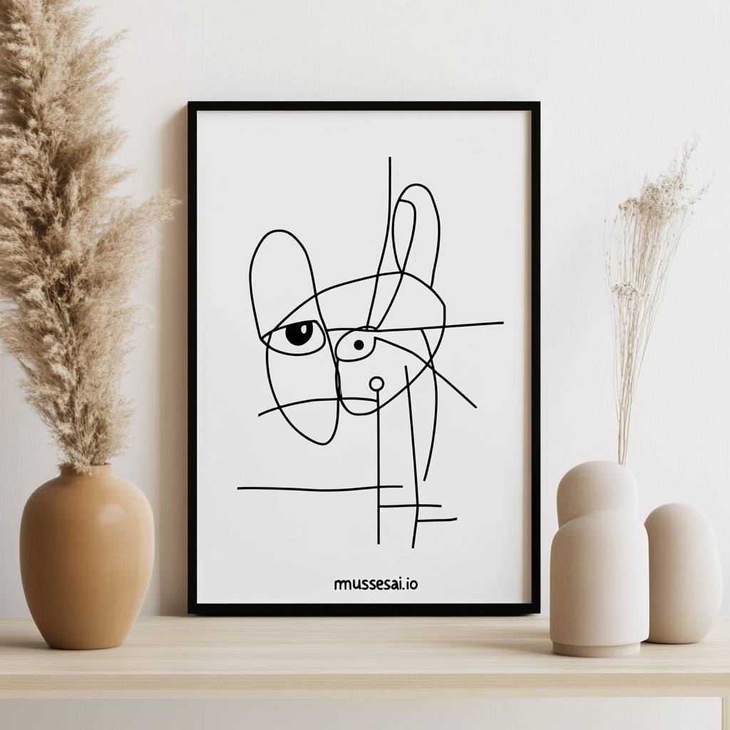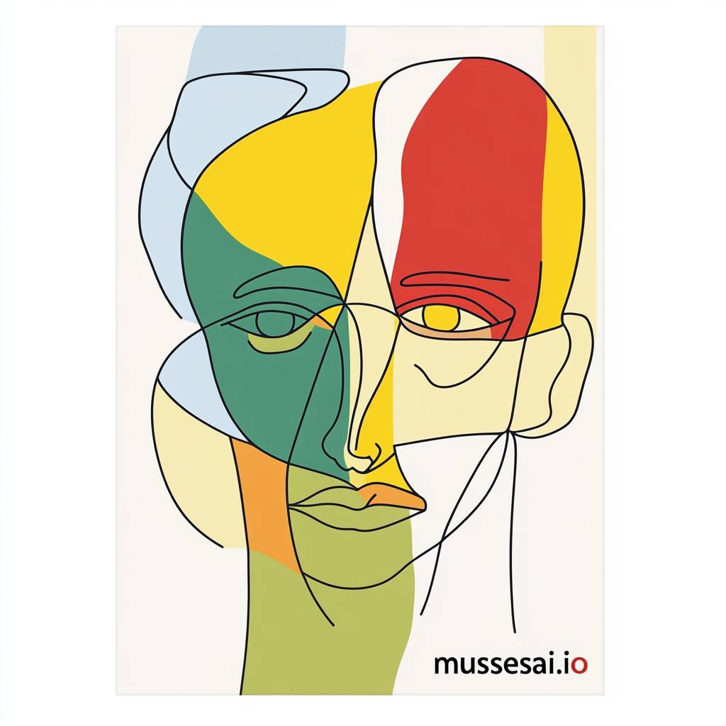 以巴勃羅·畢卡索風格創作的「musesai.io」極簡線條藝術海報