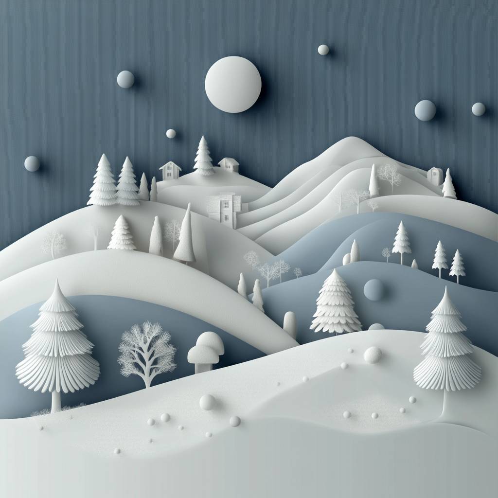 winter snowy illustration for new year eve, silver and blue, by Bob Staake --style raw --profile foxrztv --v 6.1