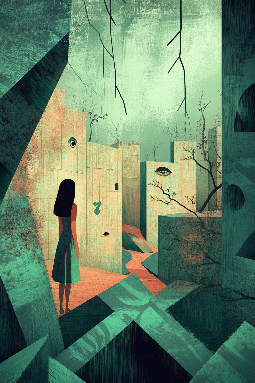 夢捕手,採用清新的新波普插圖風格,天藍色,夜核,特立獨行的幻影細節,詳細的鉛筆描繪,沉思的肖像,動畫 GIF