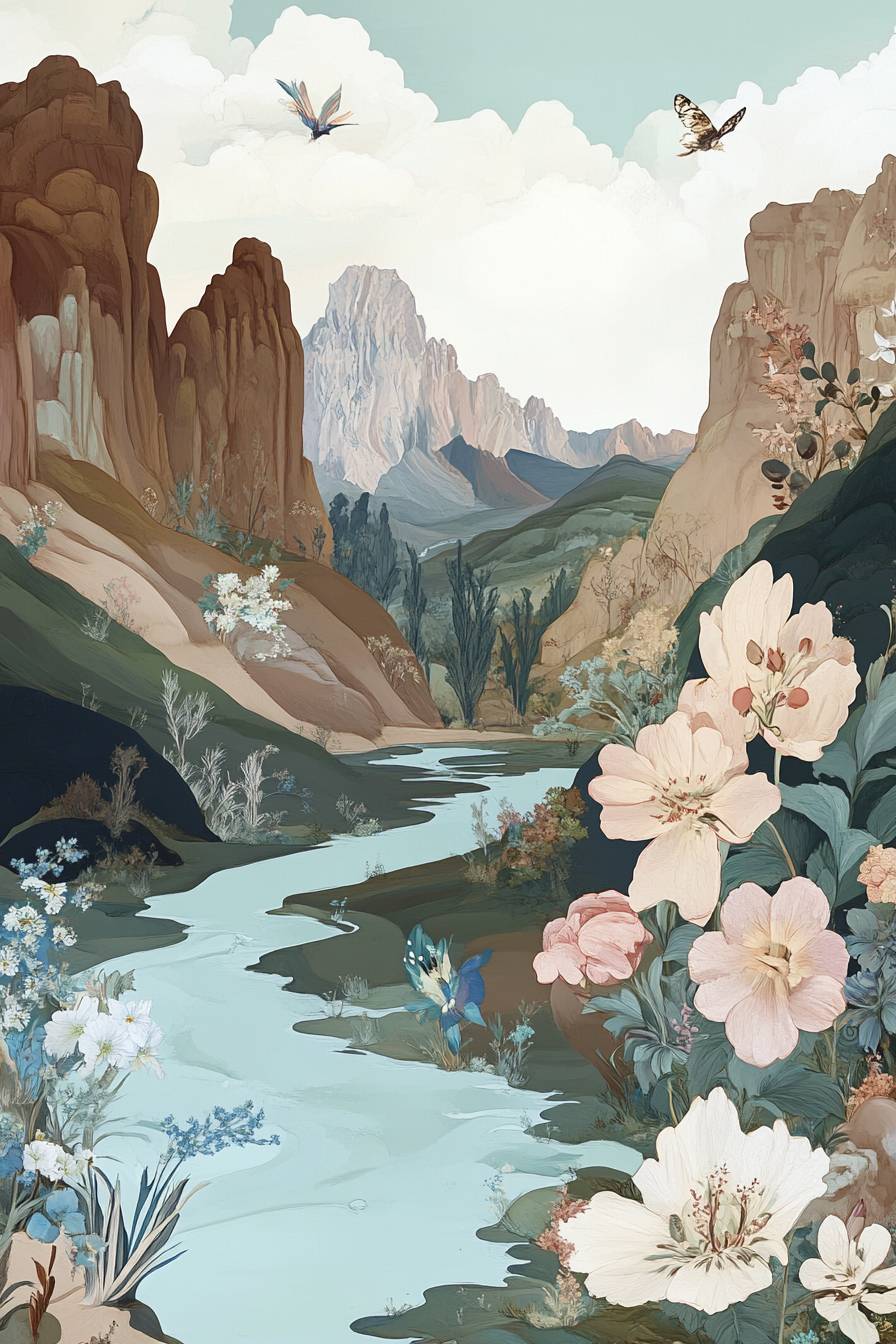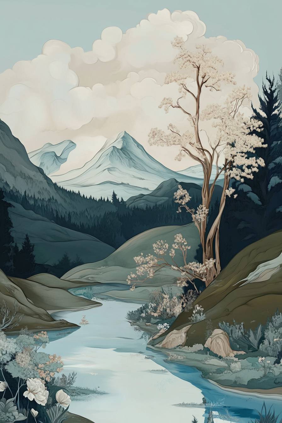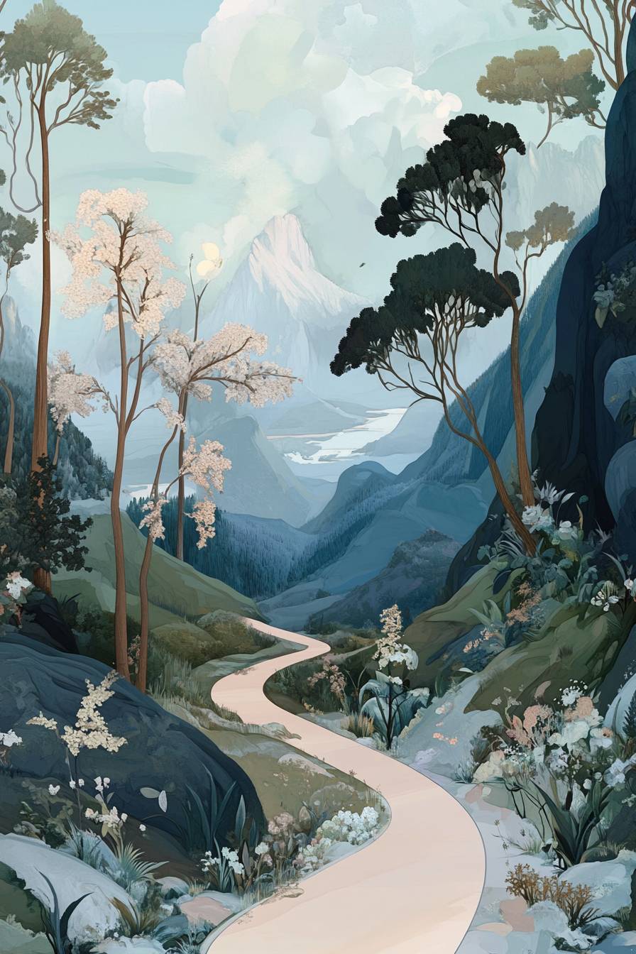 vector art landscape --sref 3266142706 --v 6.1 --ar 2:3