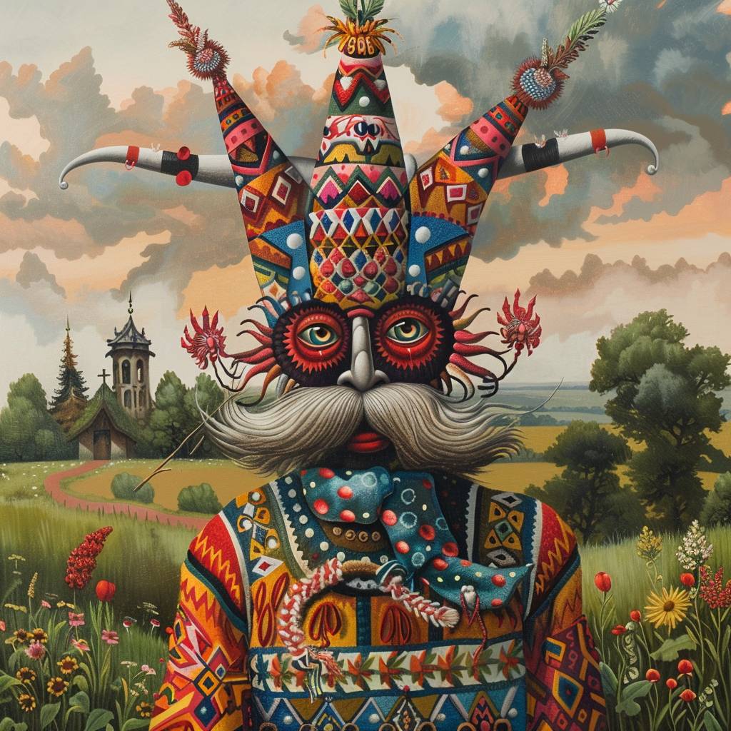 slavic folk character painted by Yinka IloribyYinka Ilori--v 6 --v 6.0