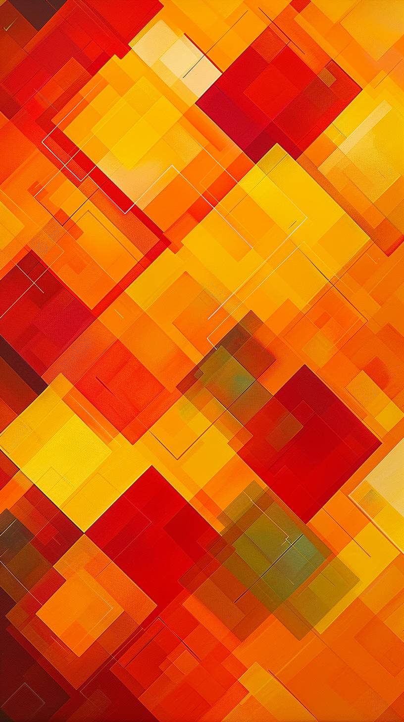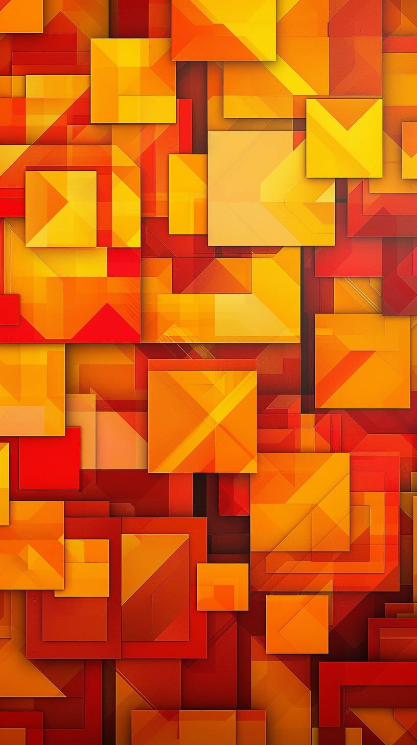 modern interior design, geometric shapes, overlapping squares, vibrant shades of orange, yellow, and red, playful and energetic color scheme, evokes excitement and enthusiasm, abstract geometric pattern, geometric overlap, clean edges, minimalist style, suitable for modern interior design, vibrant wall art, contemporary room accent, background for creativity and inspiration, illusion of depth by layered shapes, surface that radiates a sense of joy and optimism --ar 9:16 --v 6.0