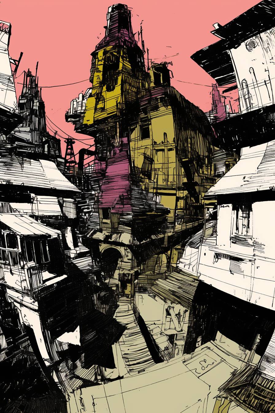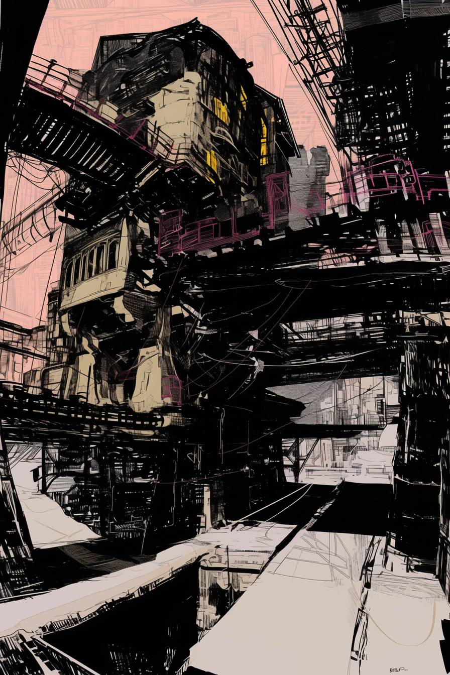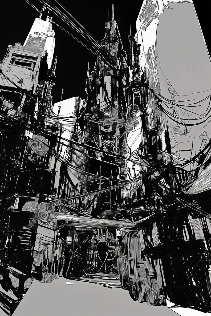 manga-style urbanscape of 19th century steampunk megacity --sref 121844099 --niji 6 --ar 2:3 --style raw