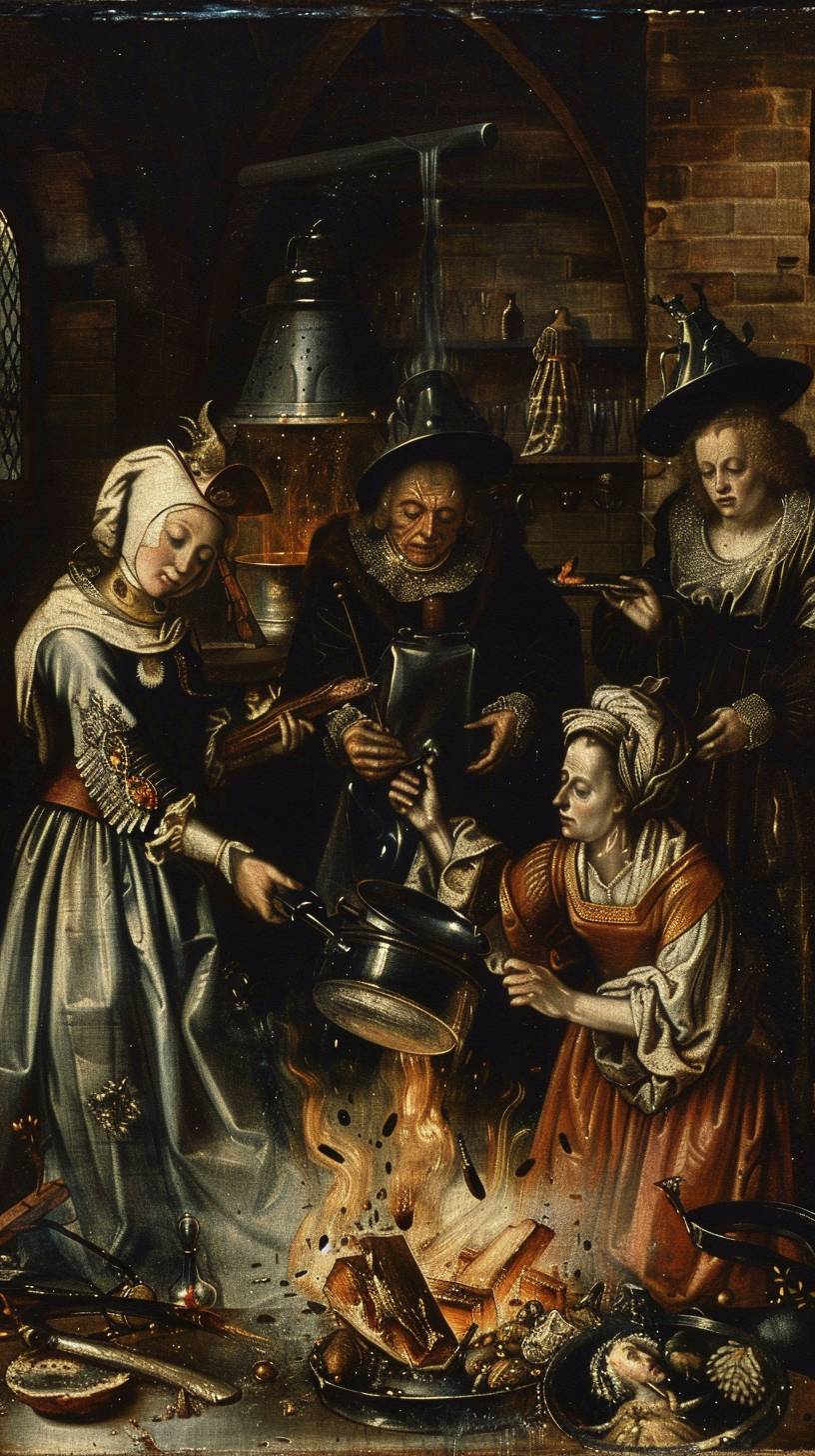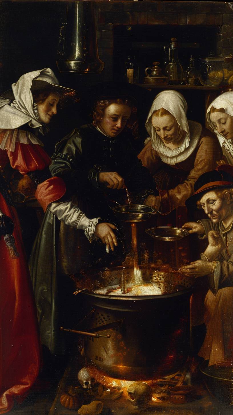 安布羅修斯·本森的畫作描繪了毒藥的煮沸。