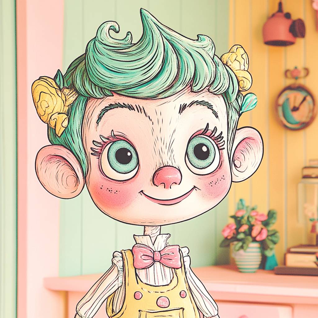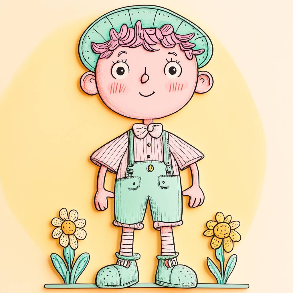 五光十色的糖果景觀,孩子們在花田中奔跑,復古童話場景,手繪風格,柔和的陽光,夢幻的氛圍,簡約的構圖