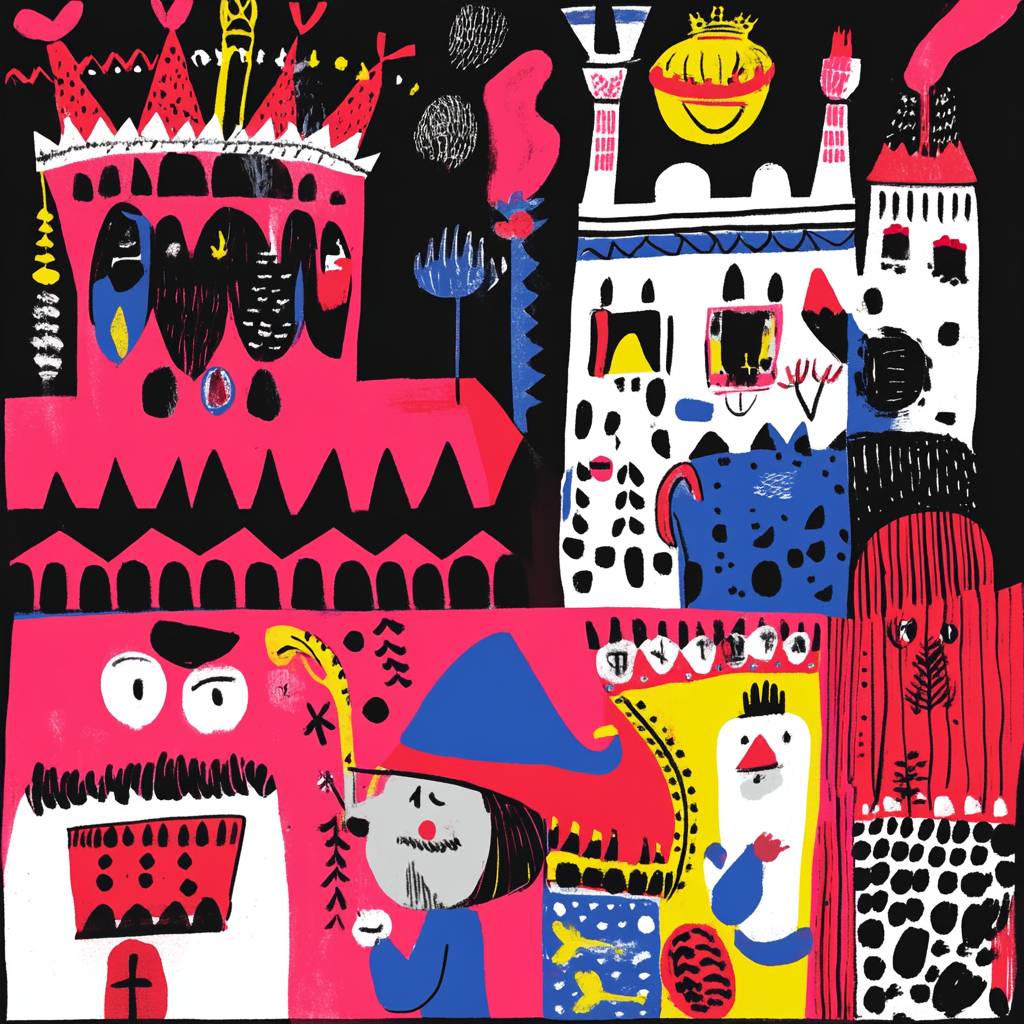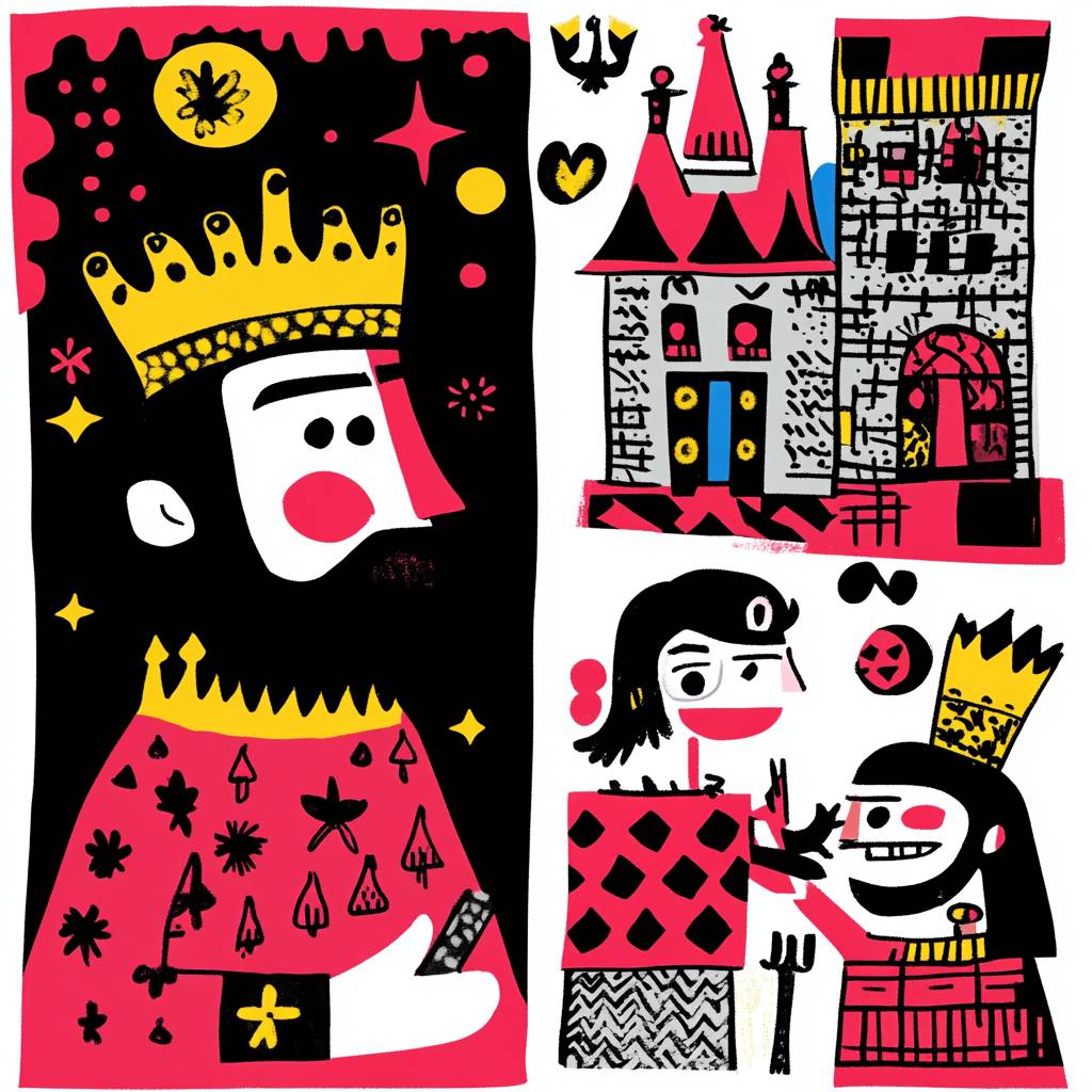 comic strip depicting scene from fairy tale about silly king --sref 572198584 --v 6.1