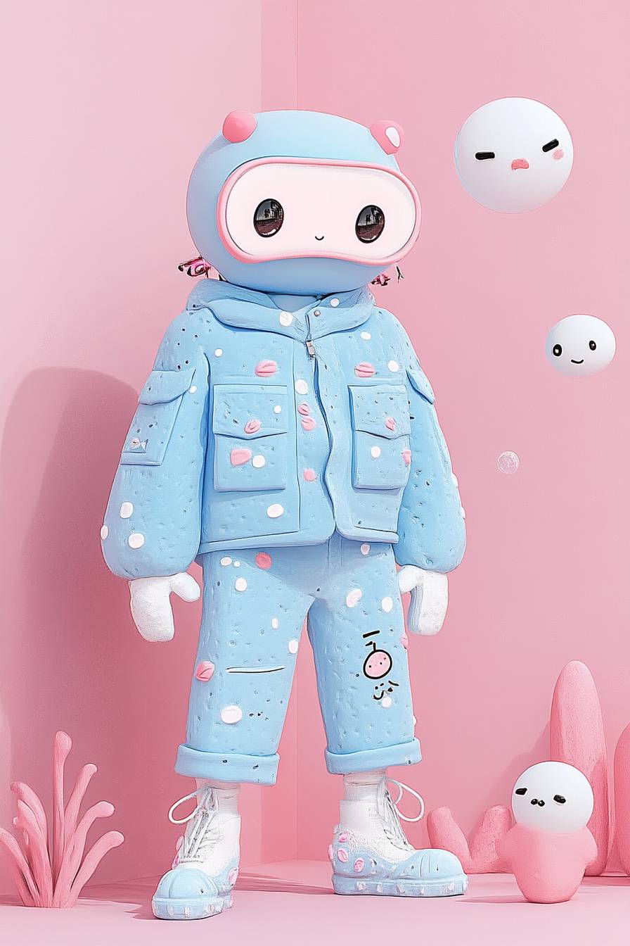 一個可愛的3D渲染擬人角色,充滿好 vibes