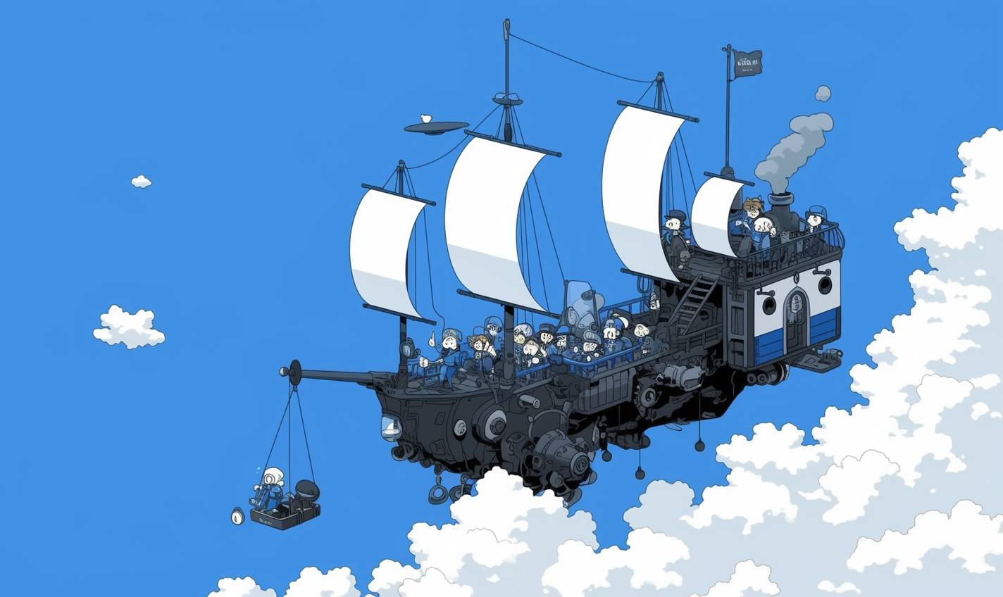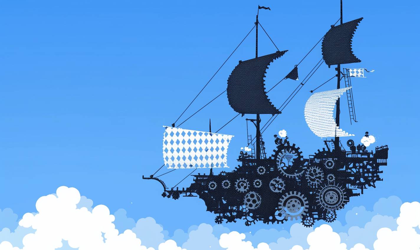 Steampunk airship, brass gears, cloudy sky --sref 3904467596 --ar 5:3 --niji 6