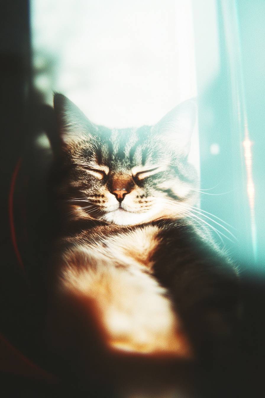A chubby cat is lying under the sun. --profile yqgyz3g --ar 2:3 --v 6.1