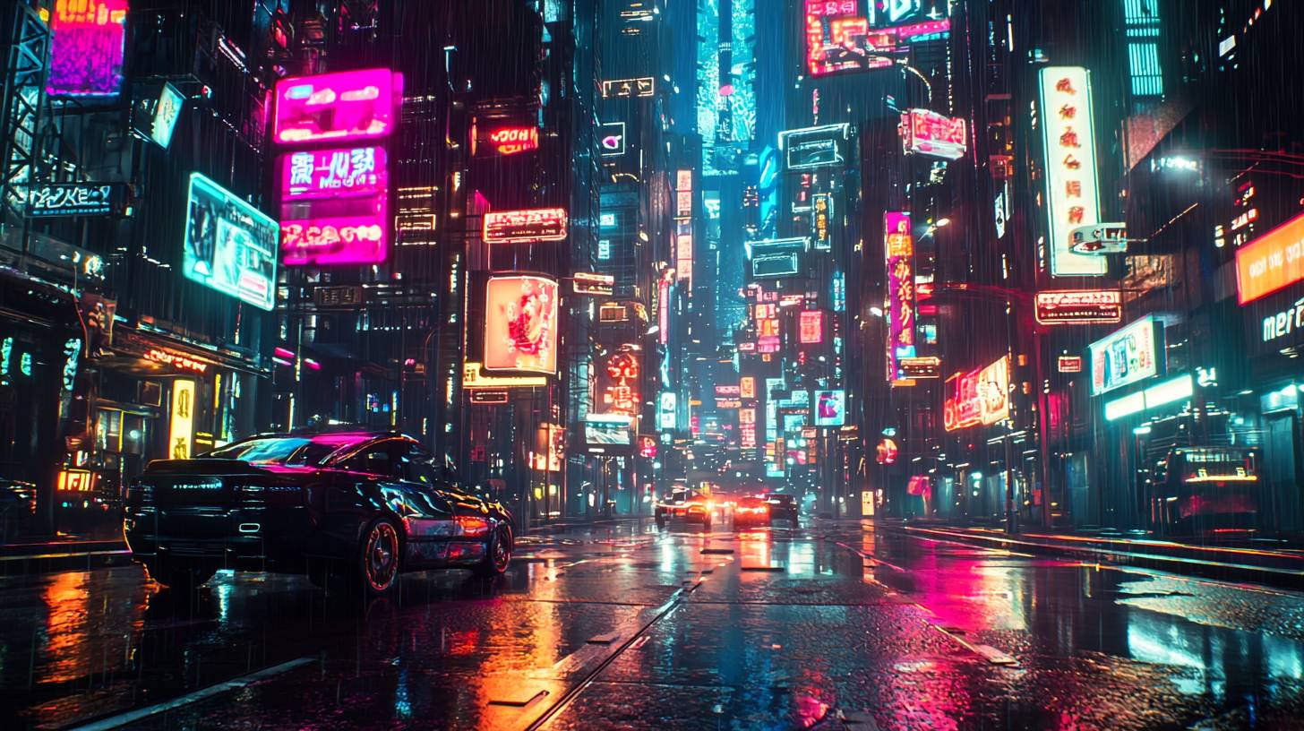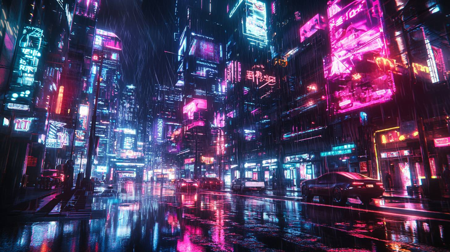 A futuristic cyberpunk cityscape at night, neon lights reflecting on wet streets, towering holographic billboards, intricate details, cinematic lighting, ultra-realistic, shot with a Sony A7III, --ar 16:9 --v 6.1 --q 2