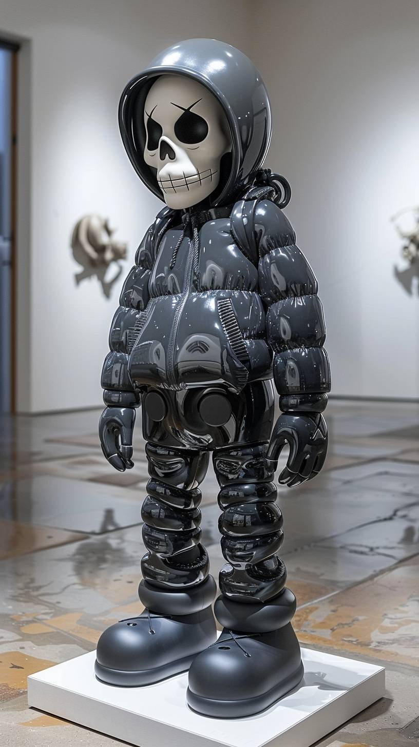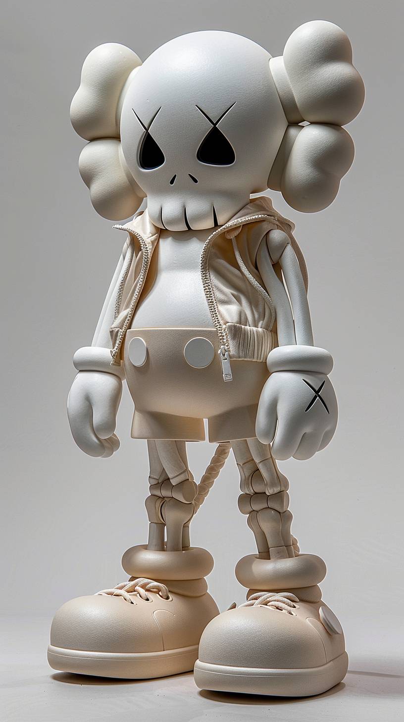 kaws one part in skeleton other plastic 4k white background realistic angle view 45 degree 3d view --ar 9:16 --stylize 750 --v 6.0