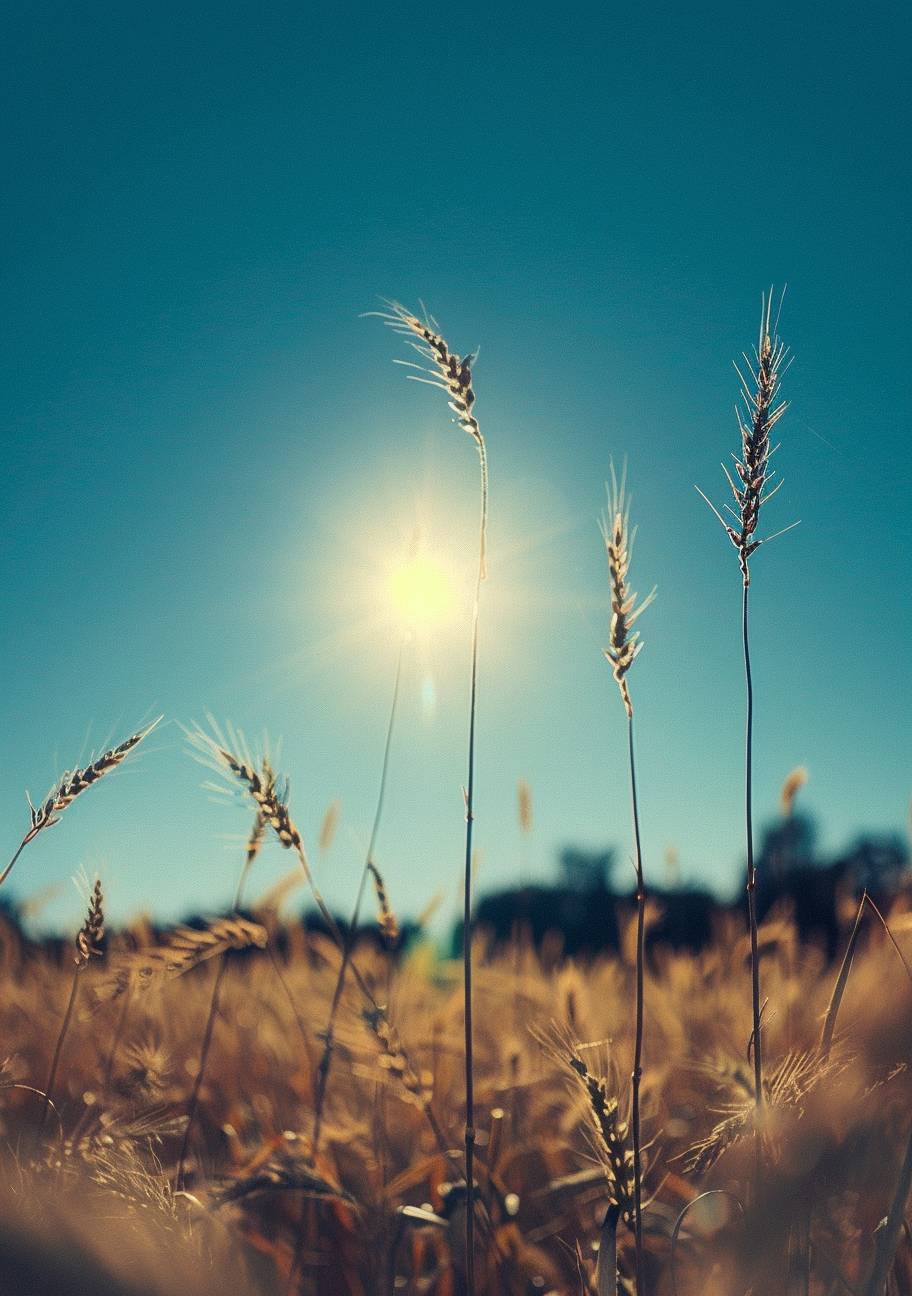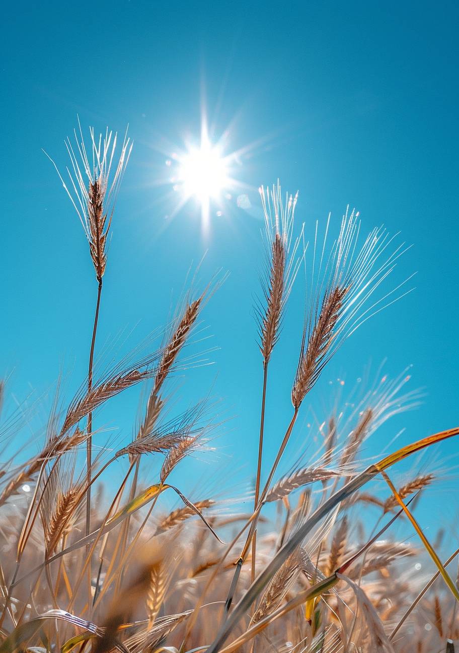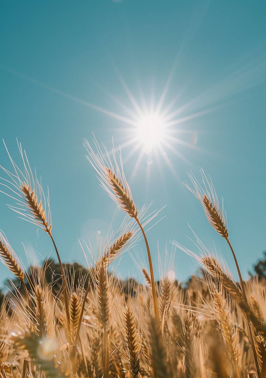 Wreath of wheat, clear sky, sun, near a reality field, cinematic shot --ar 70:99 --v 6.0