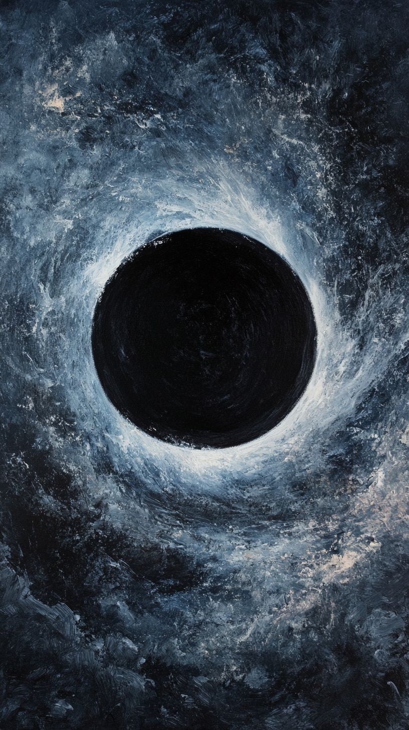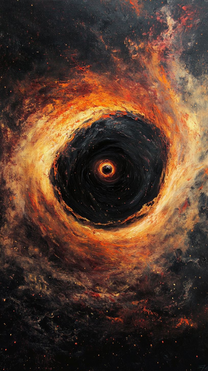 Carefully rendered space around a black hole, made with oil paint --ar 9:16 --v 6.1