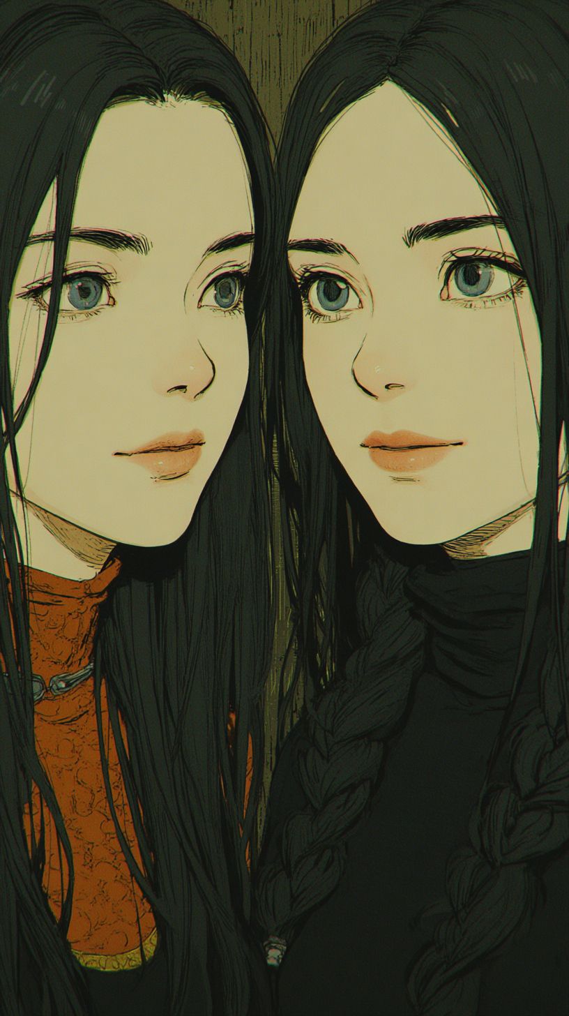 Doppelgänger Deceit, dark magic, portrait, 90's animated dark fantasy, gothic, cinematic, cel shading, 2d --chaos 60 --ar 9:16 --stylize 700 --v 7.0