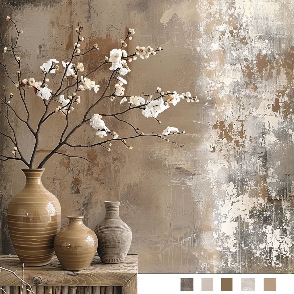 溫暖而鄉村的氛圍,秋季色調,自然和花卉圖案,細緻的細節,土色和柔和米色調色板。
