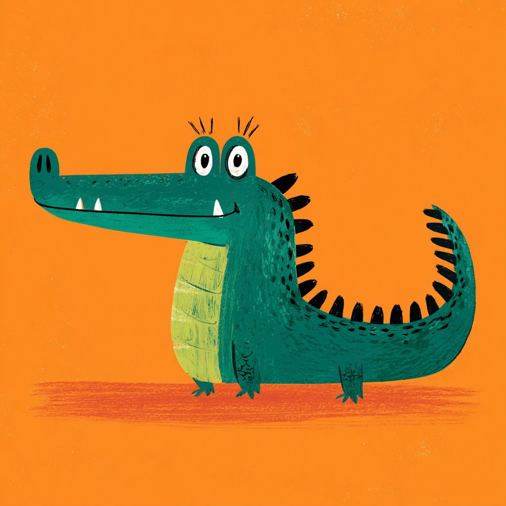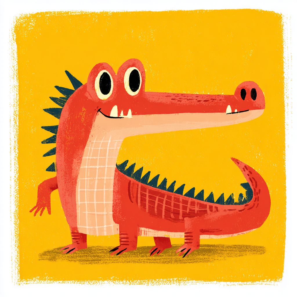 兒童書籍插圖,可愛的鱷魚,鮮明的色彩搭配,簡潔的線條