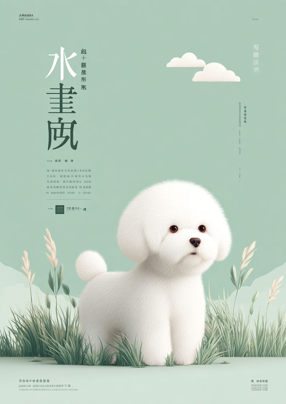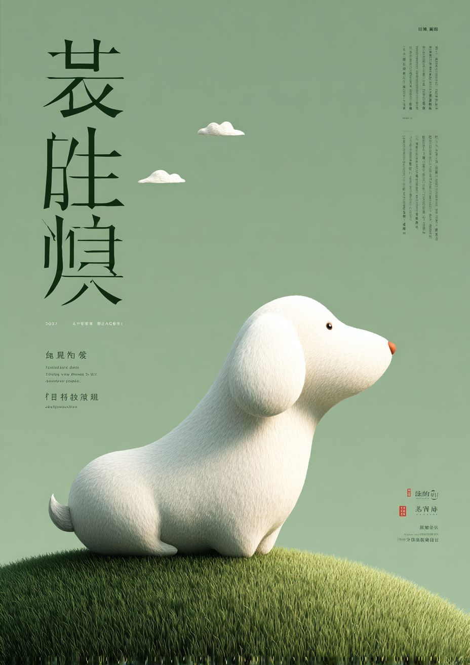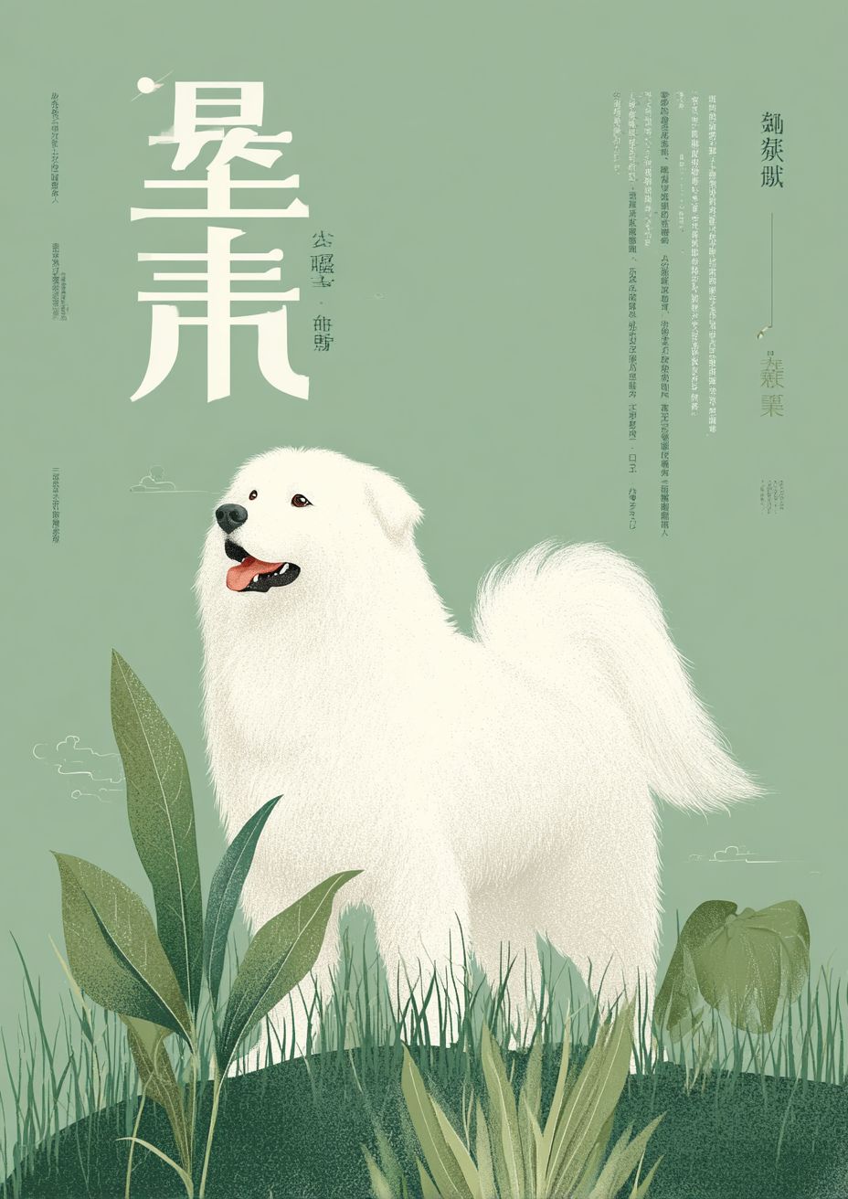 這是一幅以可愛白狗為主題的高端平面設計海報