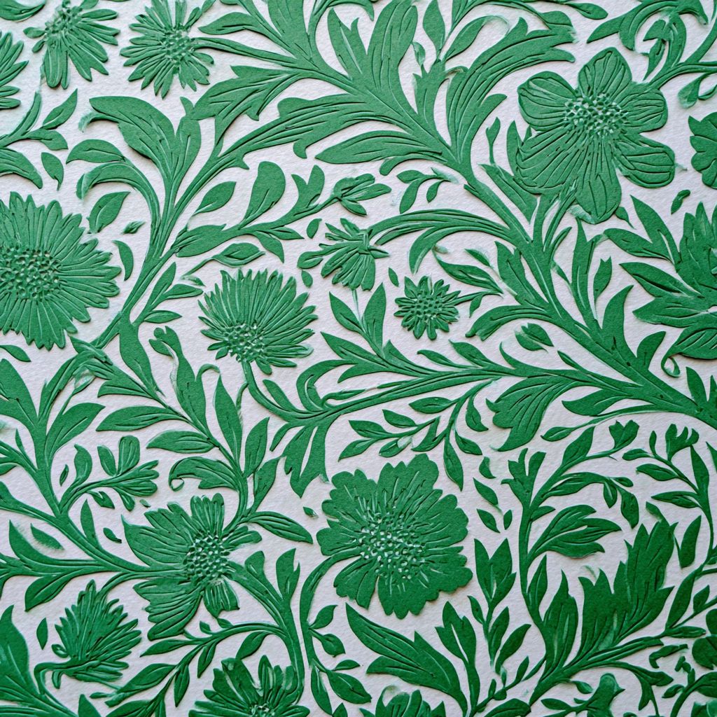 威廉·莫里斯風格平面剪紙,綠色和白色