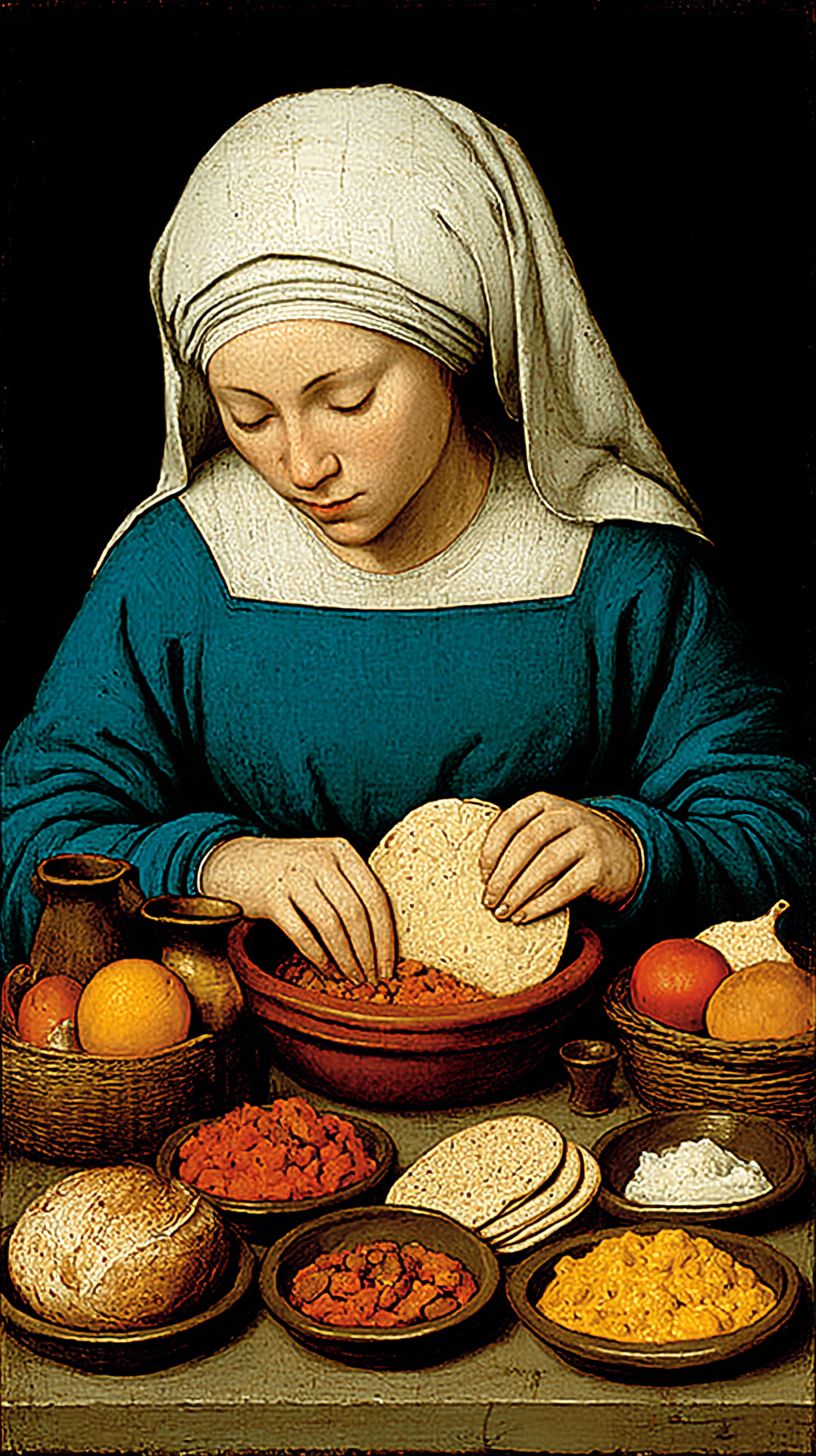 墨西哥卷餅是一種神聖的食物。中世紀的一幅墨西哥卷餅畫作展示了它強大的神聖重要性。