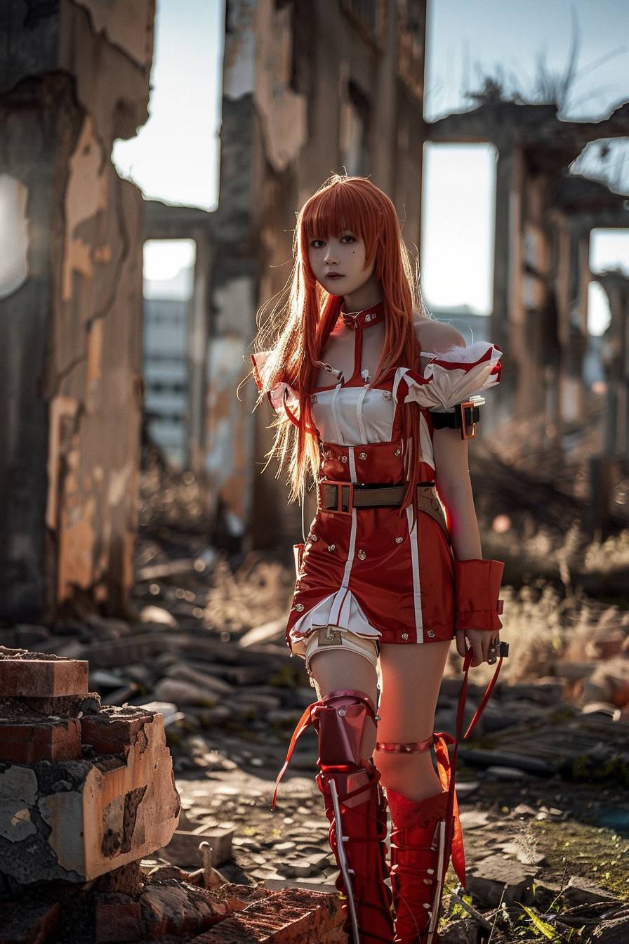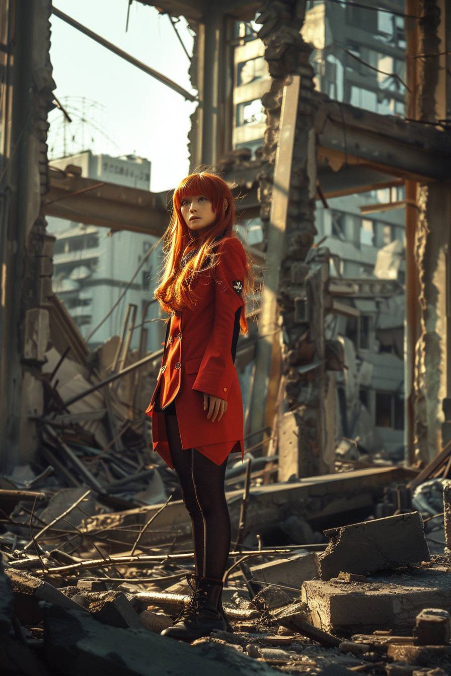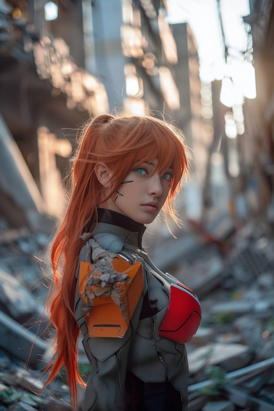 realistic asuka soryu langley in the ruins of a city --ar 2:3 --s 70 --v 6.0