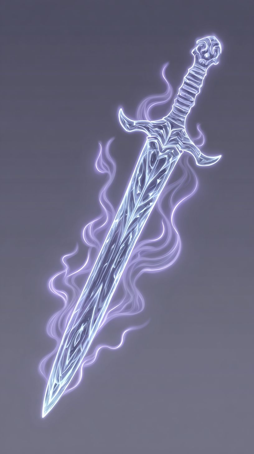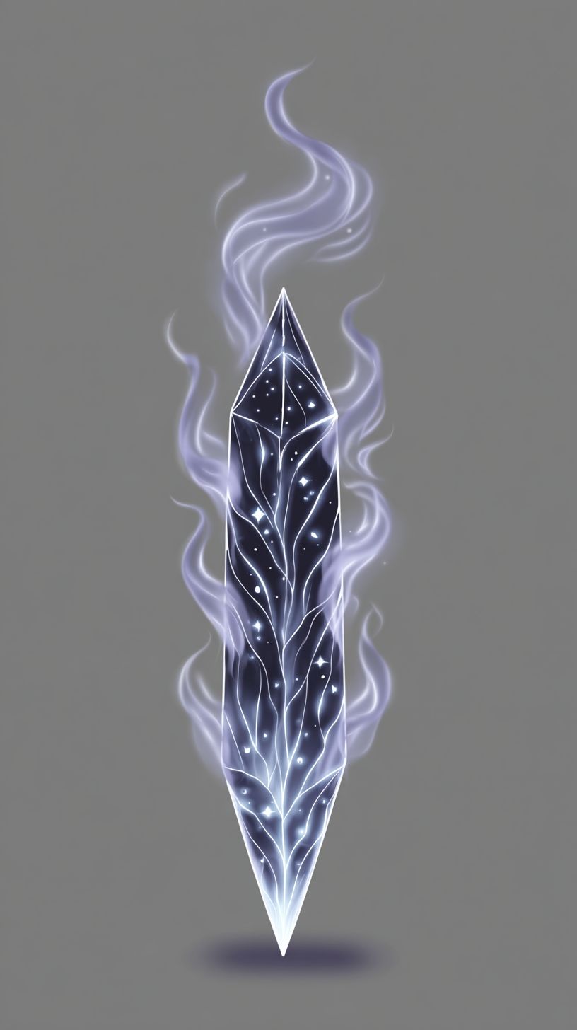 A translucent dagger made of solidified shadow, flickering between solid and smoke. Its edge distorts light like a mirage, and ghostly whispers trail behind it --chaos 5 --ar 9:16 --raw --profile 5af3i3b --stylize 300