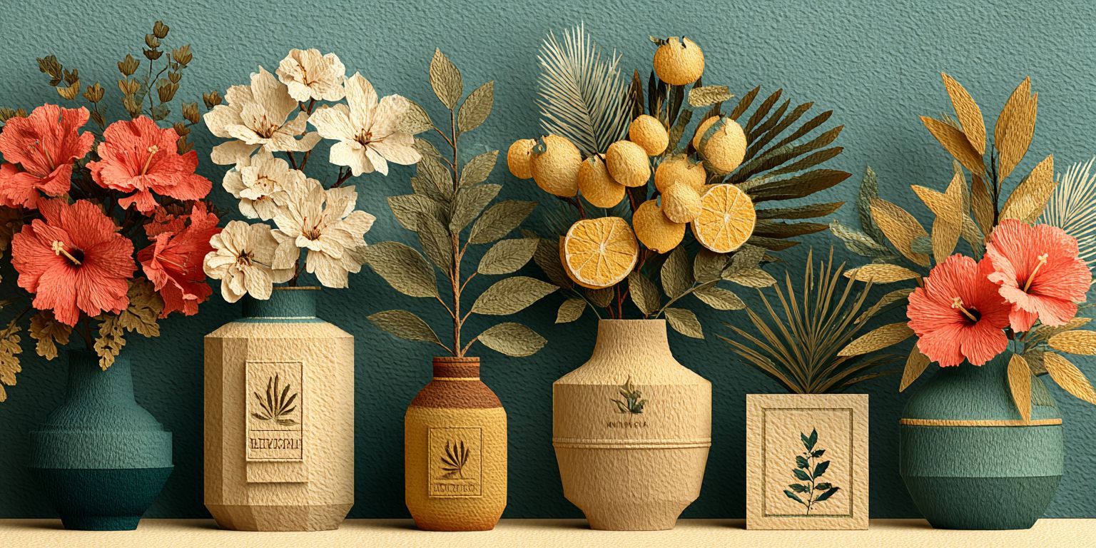 一幅現代剪紙風格的插圖,背景寬廣而空曠,植物的紋理交織其中。每個物體由真實的剪紙製成,呈現出細膩的紋理和柔和的層次陰影,採用乾淨、簡約的佈局,並留有大量的負空間。平滑的紙張邊緣,優雅的扁平構圖,平衡且專業的視覺風格,適合醫療和營養網站橫幅。