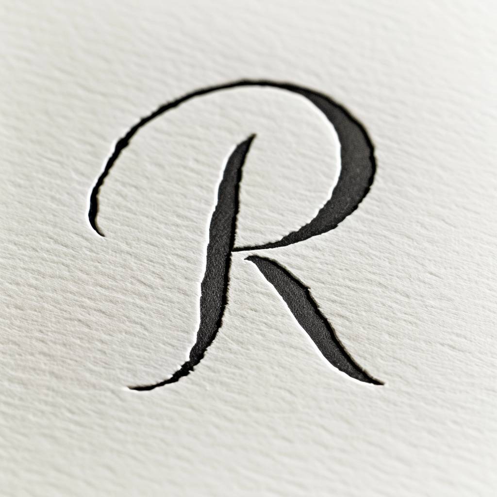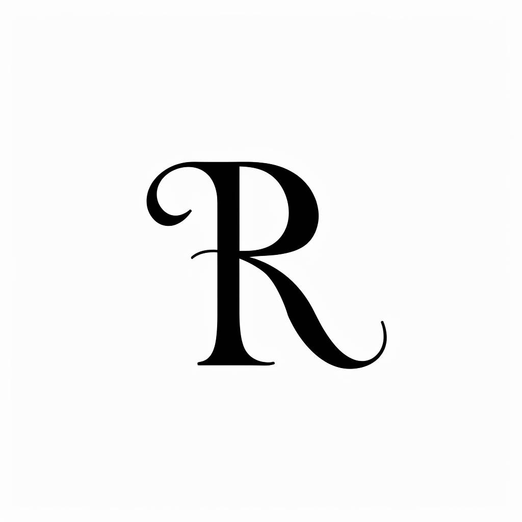 公司標誌,字母R,極簡風格,白色背景,黑色字跡