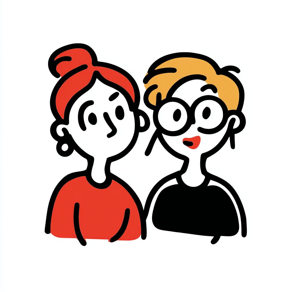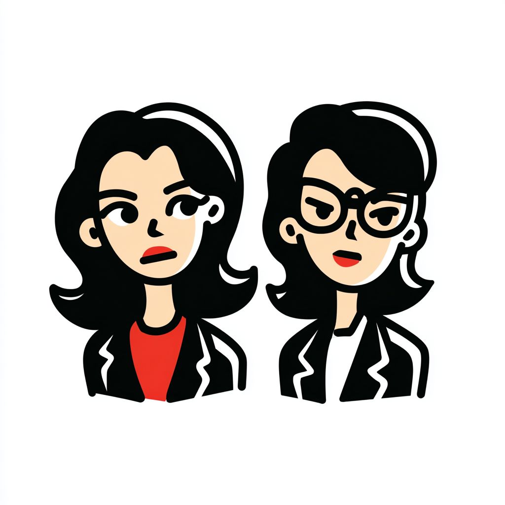 two professional female expert portrait, about marketing and design, icon for thumbnail. with tired face. one with glasses. --sref 3908994546