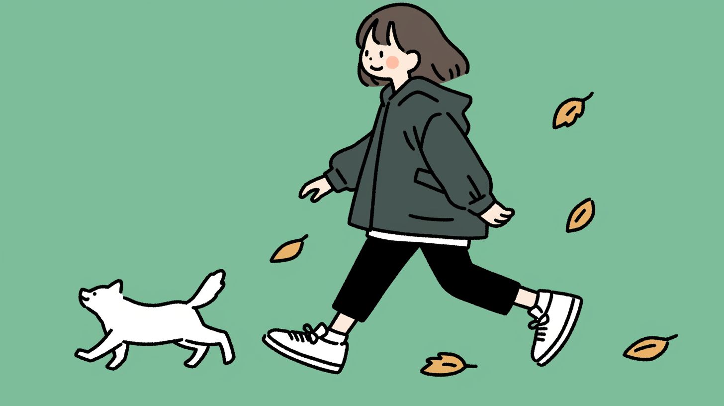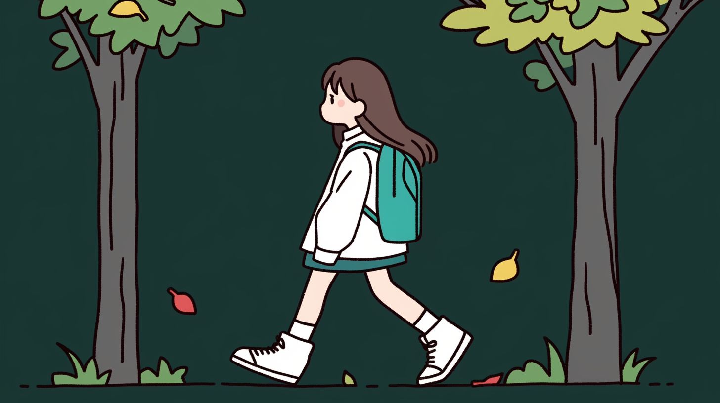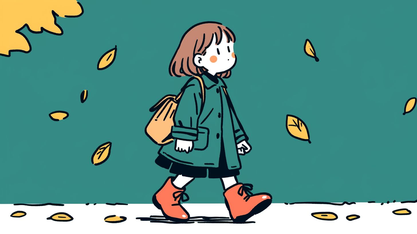 A cute girl walking through the autumn leaves, fallen leaves, high quality --ar 16:9 --profile r4m1zj8 --niji 6