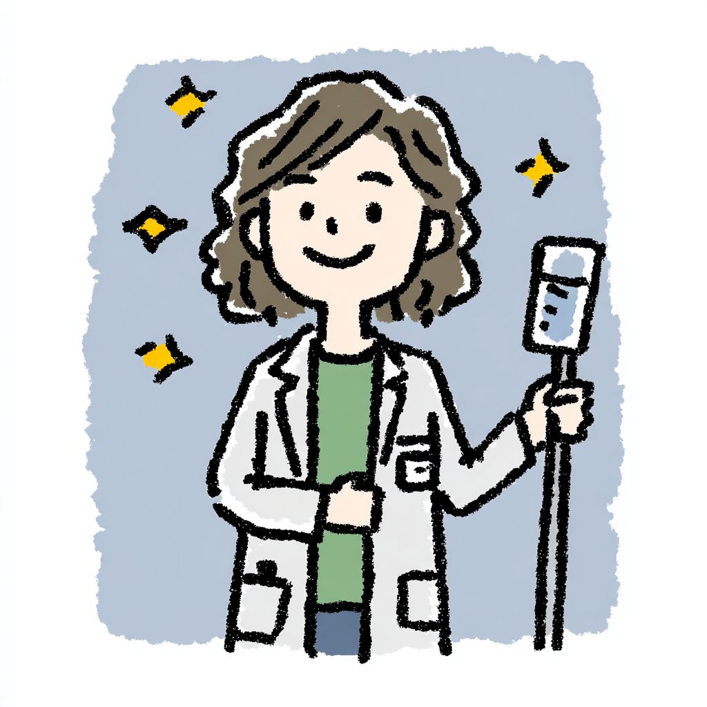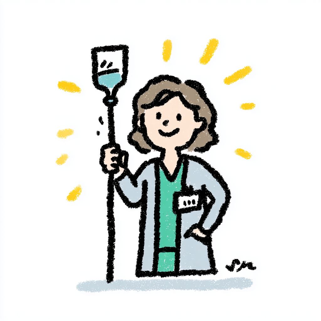 Female medical staff holding an IV stand, nurse, white background --profile k1o75pc --v 7.0