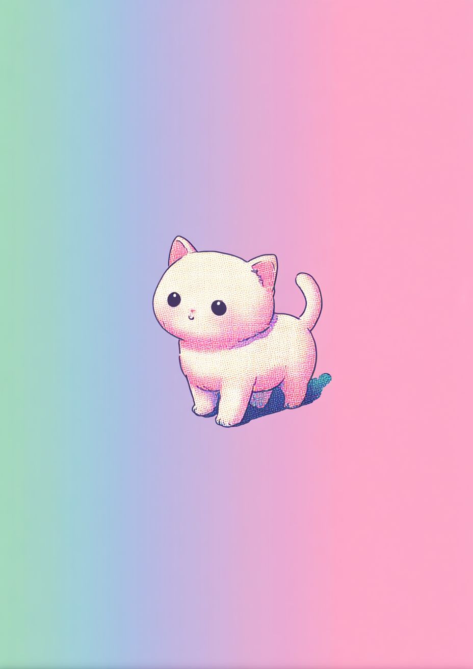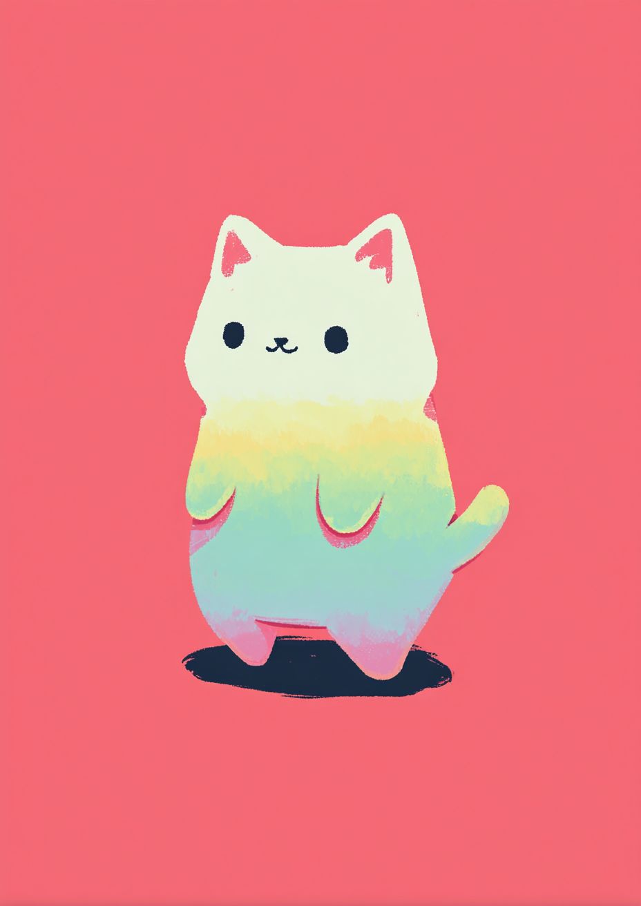 a cute kawaii minimalist illustrated kitten, soft pastel colors, simple lines, small body, adorable expression, colorful background --ar 5:7 --quality 2 --profile ztcxmoq --v 7.0