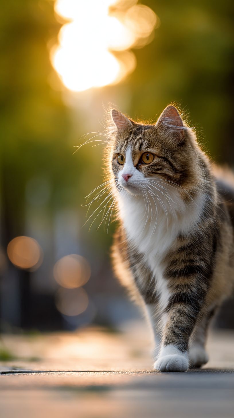 探索貓咪散步的日益流行趨勢及基本寵物護理知識,主題設置在黃金比例點,高清質量8K。