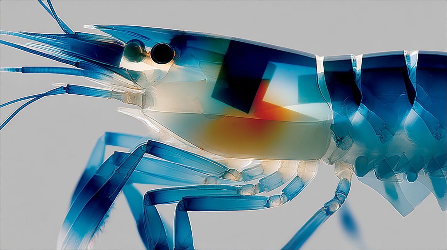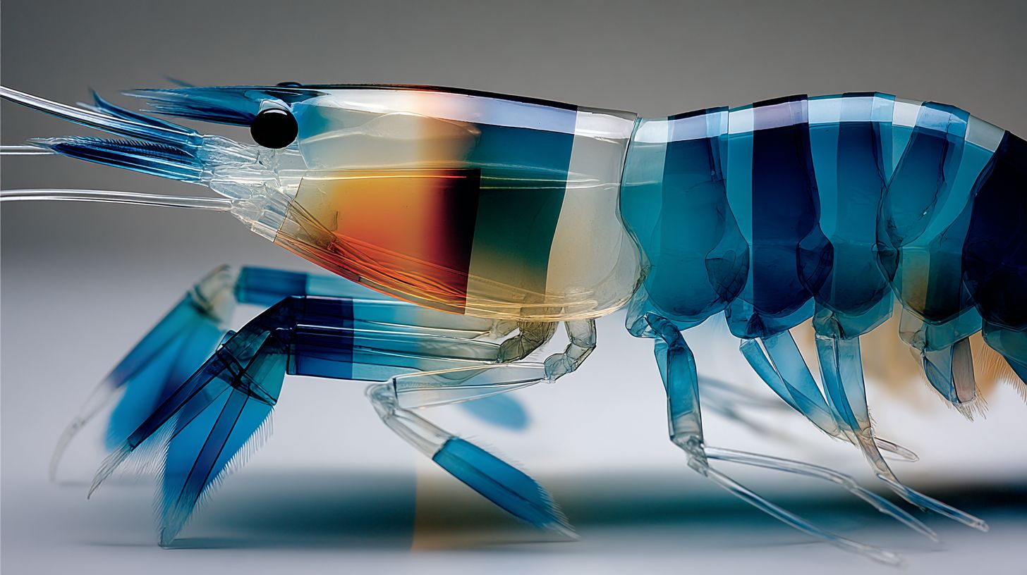 Macro close-up of transparent crystal glass disco shrimp, bright vivid colours --ar 16:9 --raw --sref 3405823878 --sv 4 --sw 100 --stylize 300 --v 7.0