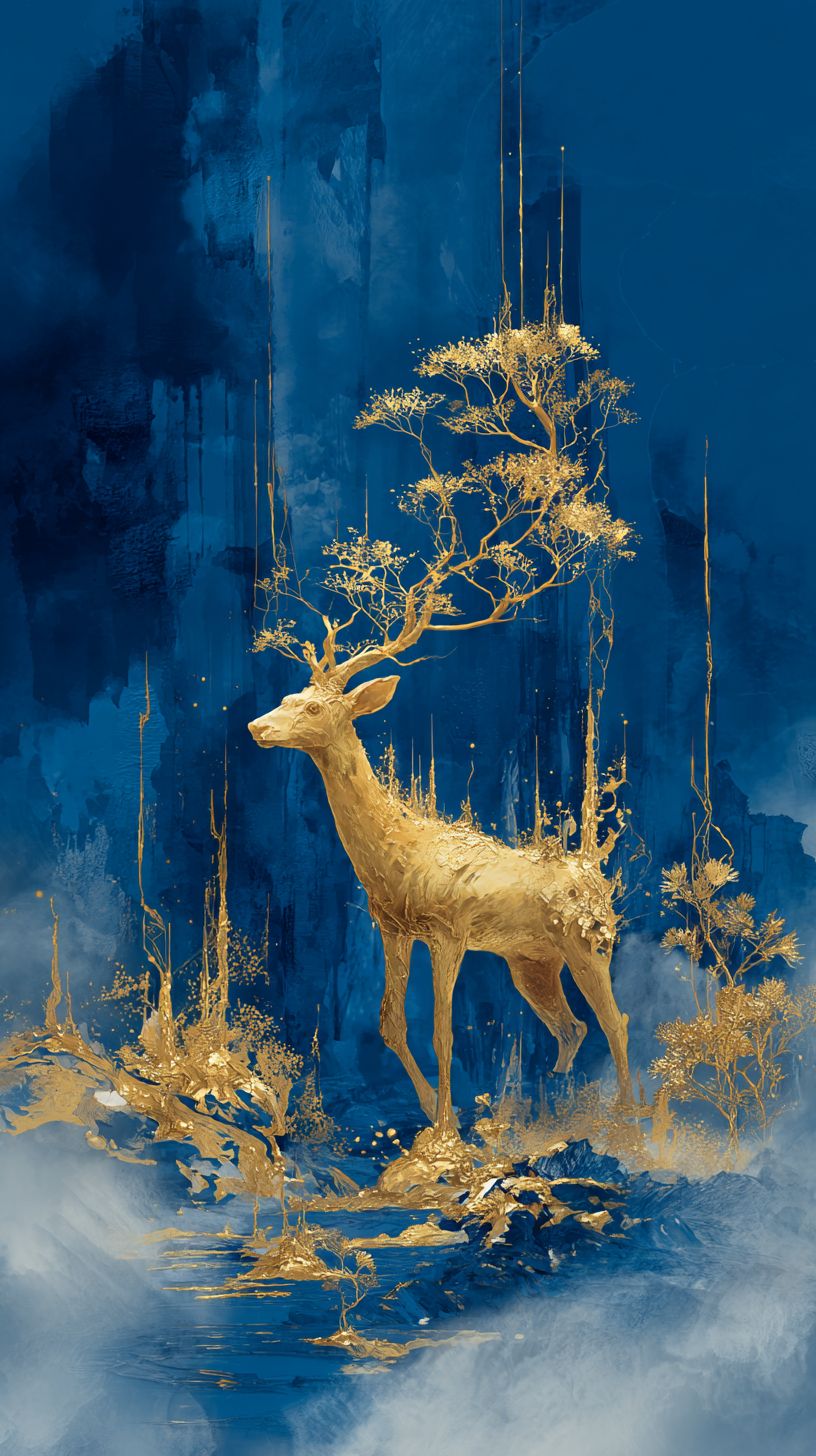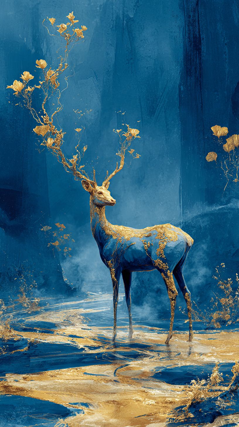 A graceful deer with antlers made of glowing coral and crystals, standing in a shallow, glitter-infused forest stream, surrounded by bioluminescent flora and shimmering fog, ethereal wildlife photography, luminescent detail, soft magical light, eye-level, mystical and serene --ar 9:16 --sref 2940590074 --v 7.0
