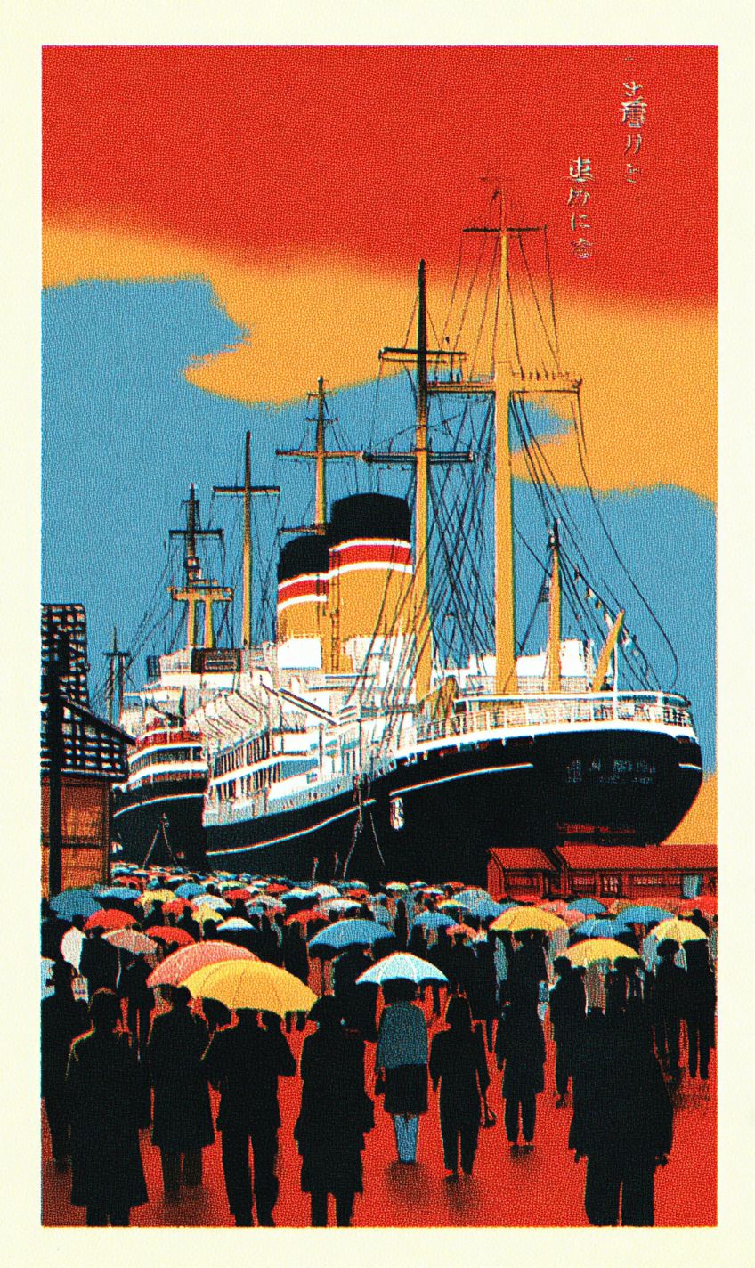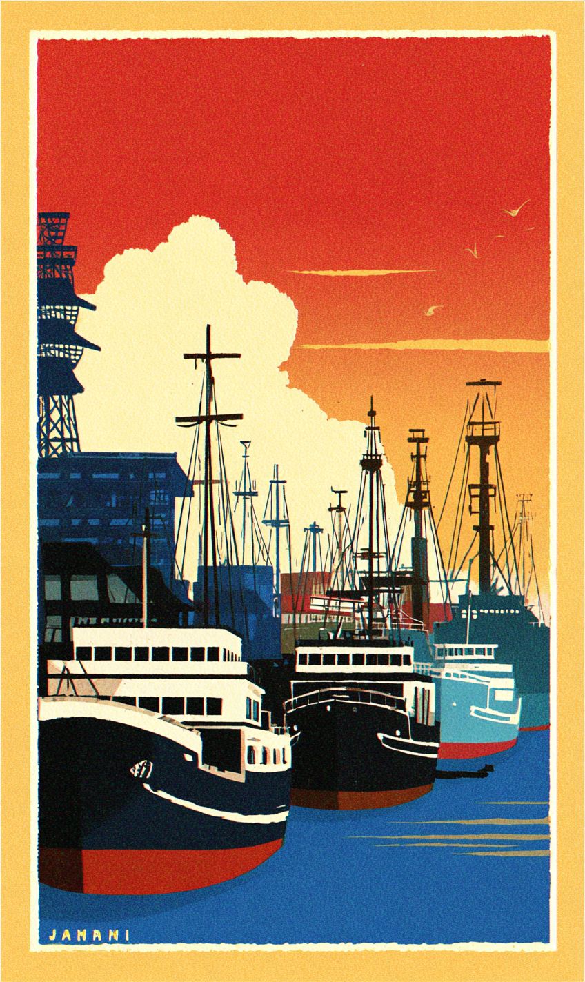 a bustling harbor dock --sref 3027834704 --ar 3:5 --v 7.0