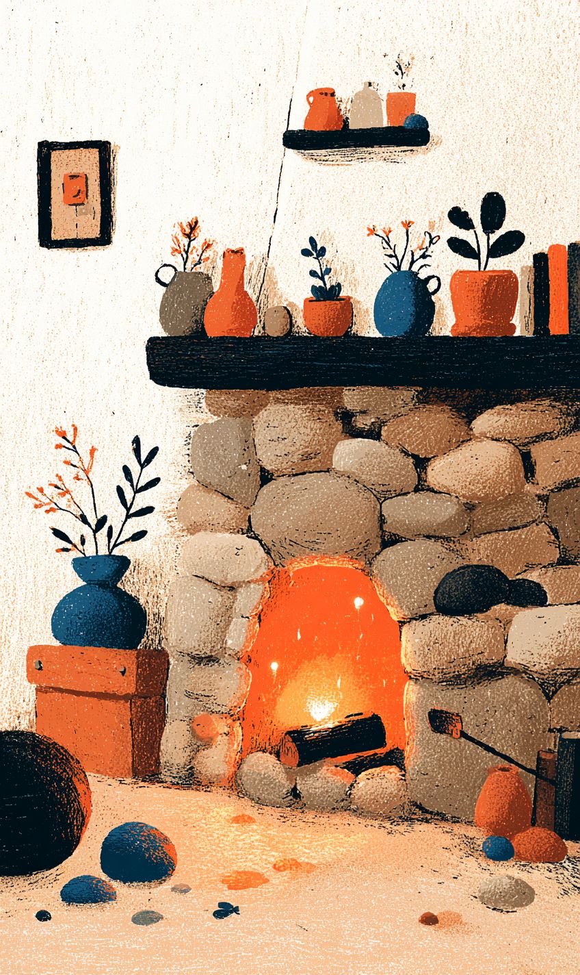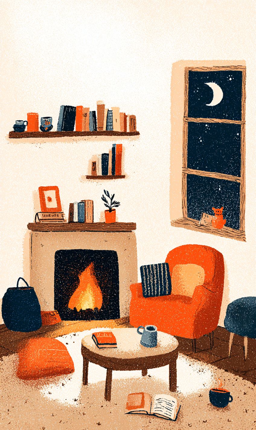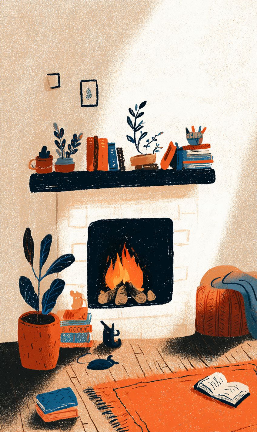 a cozy hearth glow --sref 3641666064 --ar 3:5 --v 7.0