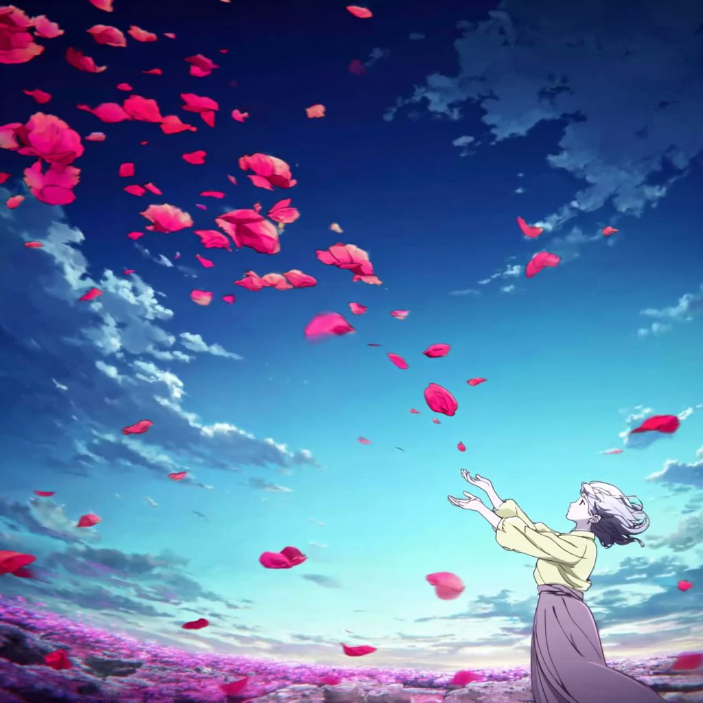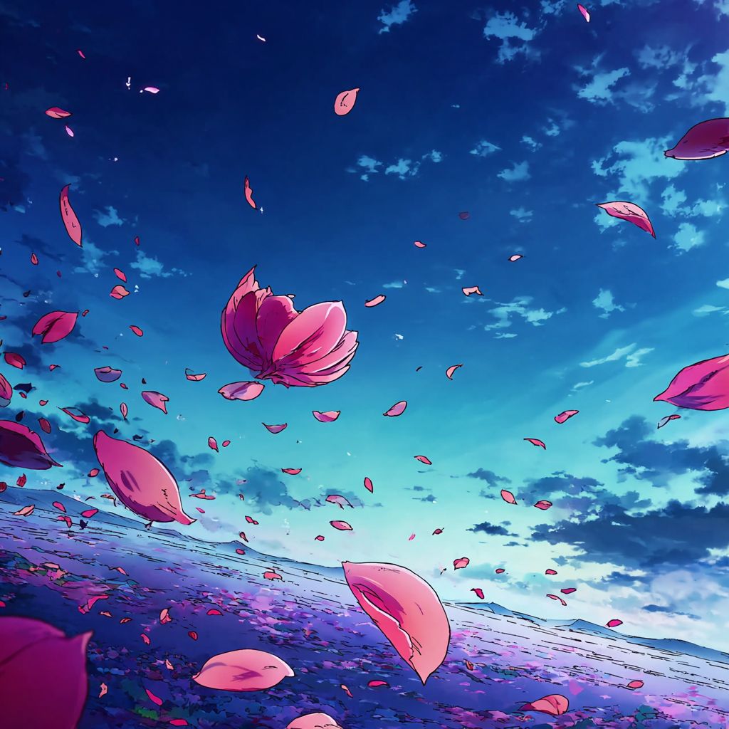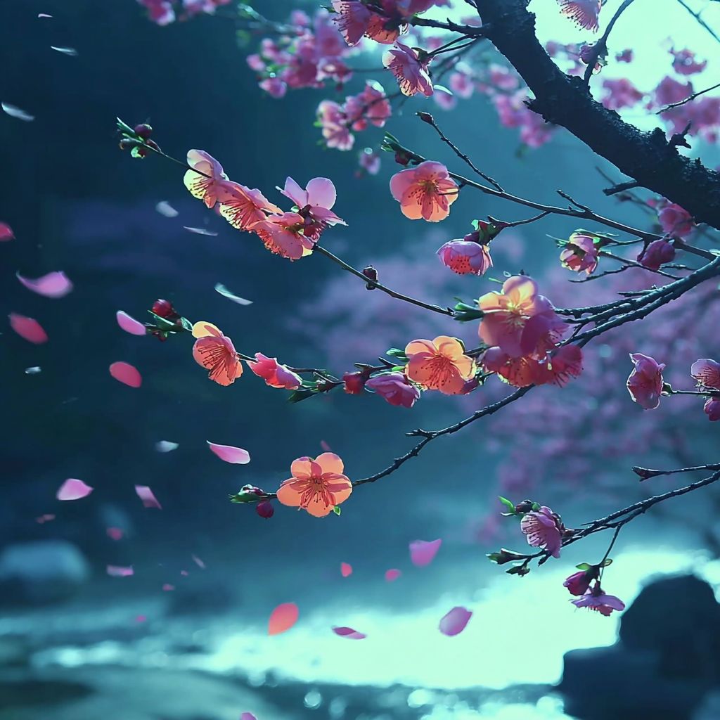 a graceful petal fall --sref 2719351390 --ar 1:1 --v 7.0