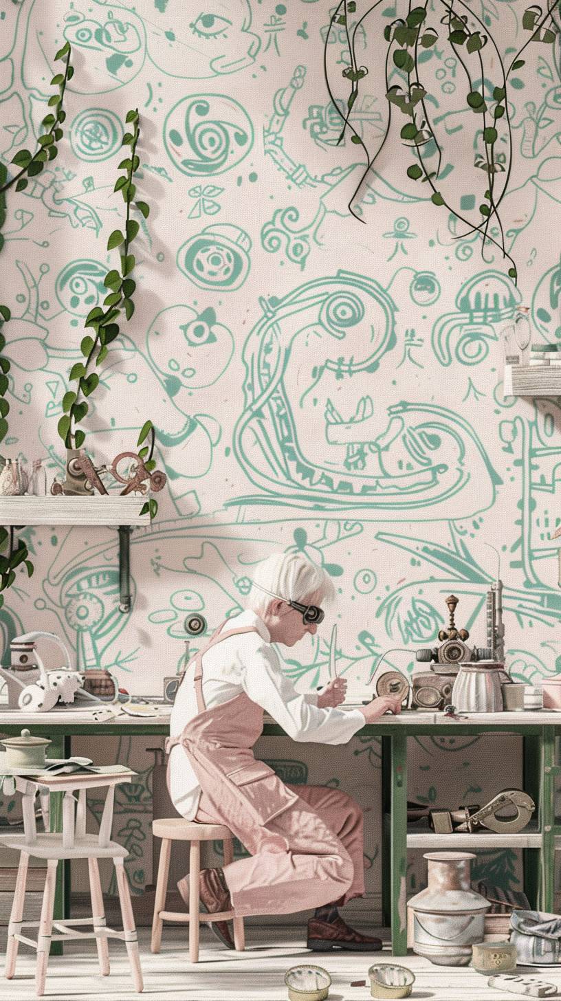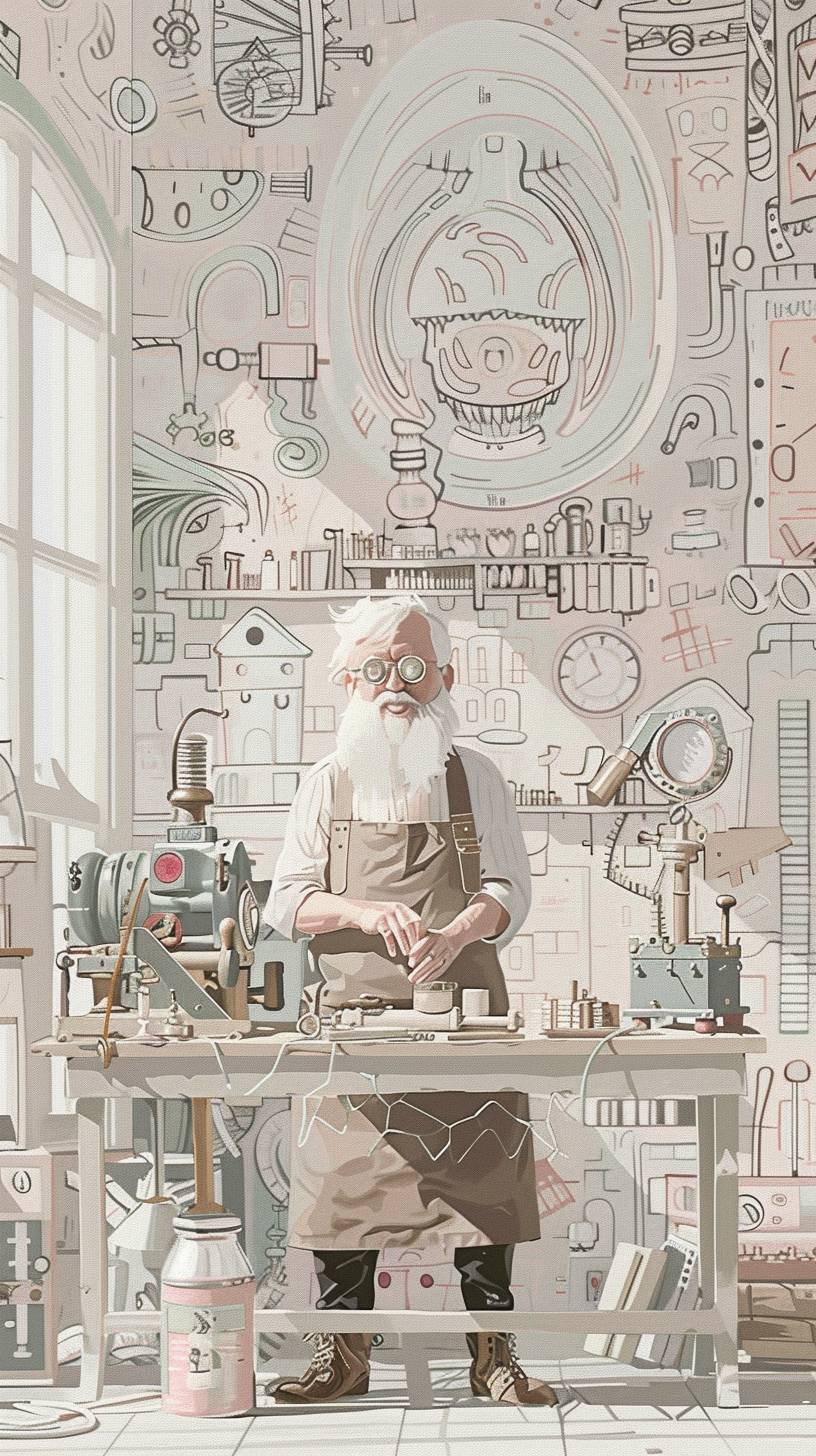 Victorian steampunk inventor in a cluttered workshop, surrounded by intricate machinery and gadgets, wearing goggles and a leather apron --ar 9:16 --sref 128583914 --v 6.0