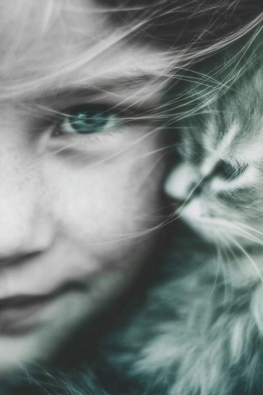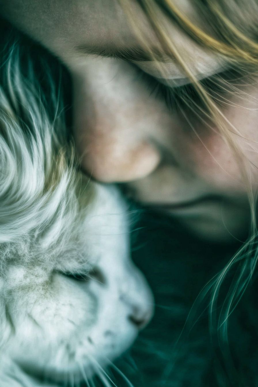 A young beautiful girl and a cute fluffy cat --sref 3359684836 --ar 2:3