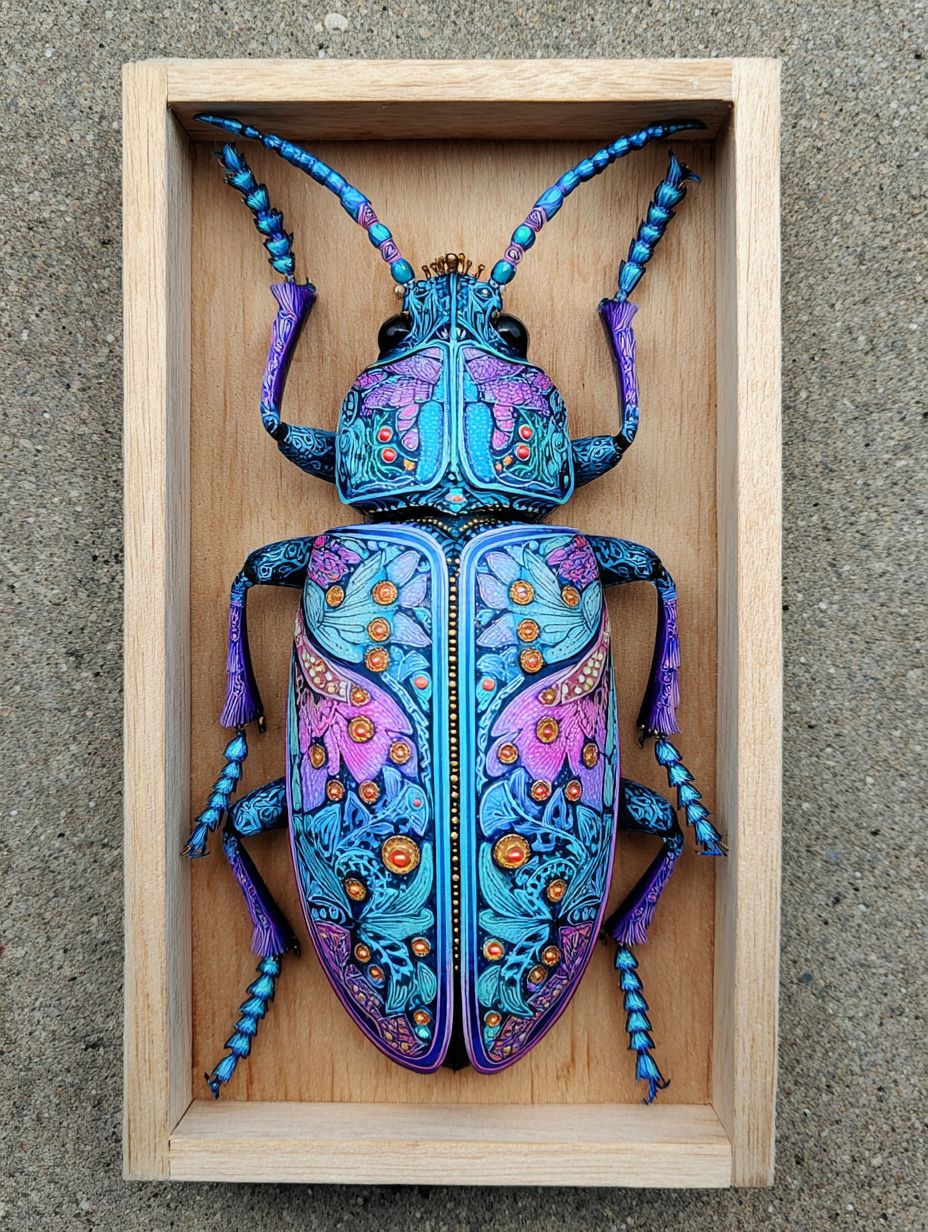 hyper stylized ornate beetle sculpture of a fantasy skull creature inside a wooden box --chaos 30 --ar 3:4 --v 7.0