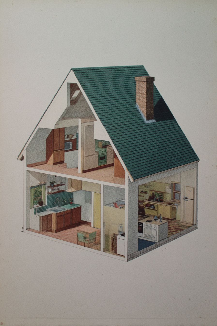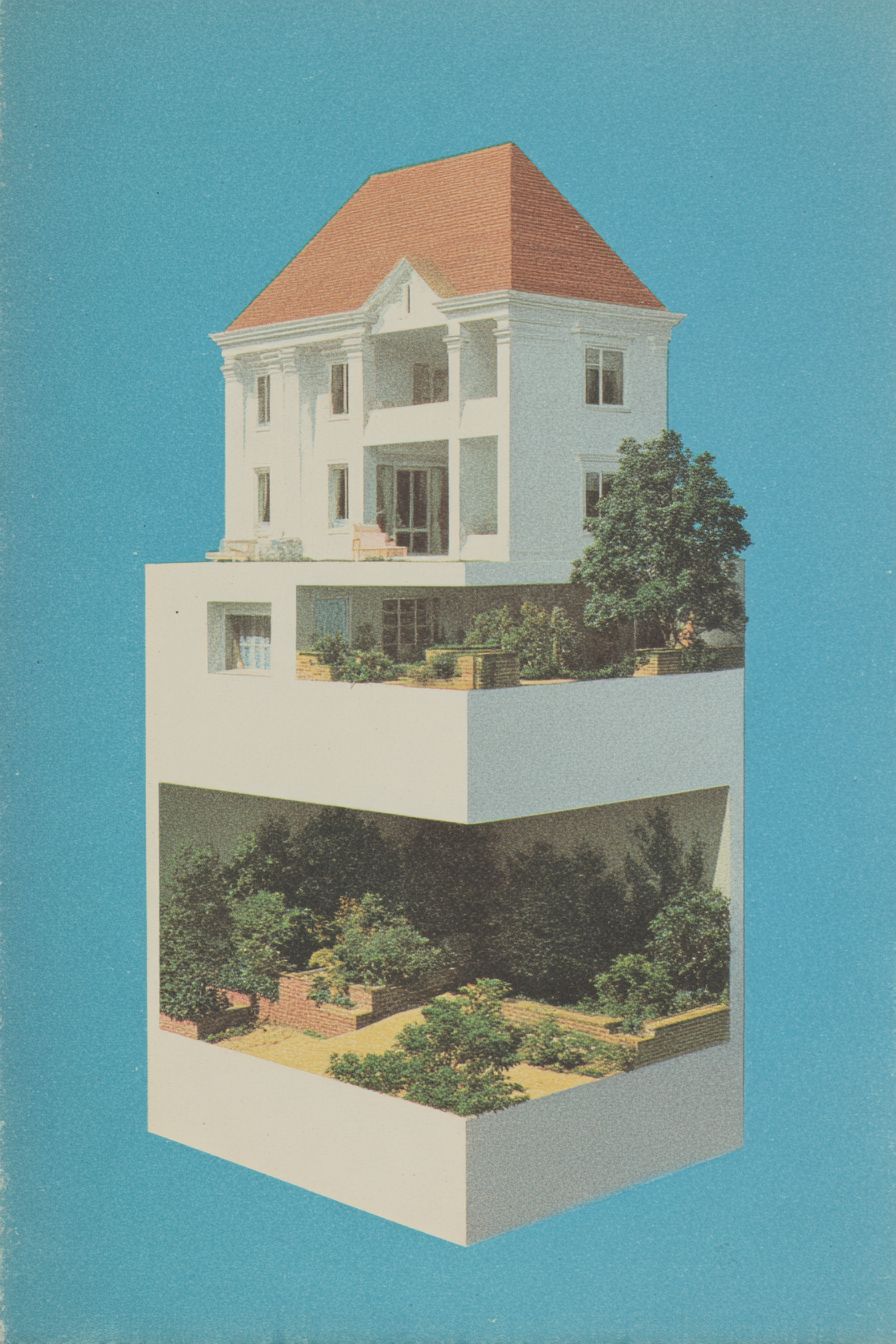 a house within a house within a house, surrealist realism, 1970s magazine advertising design draft materials, David Hockney --ar 2:3 --profile smw5ci5 --v 7.0